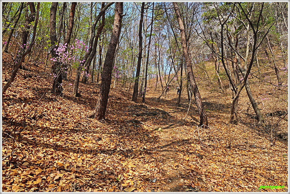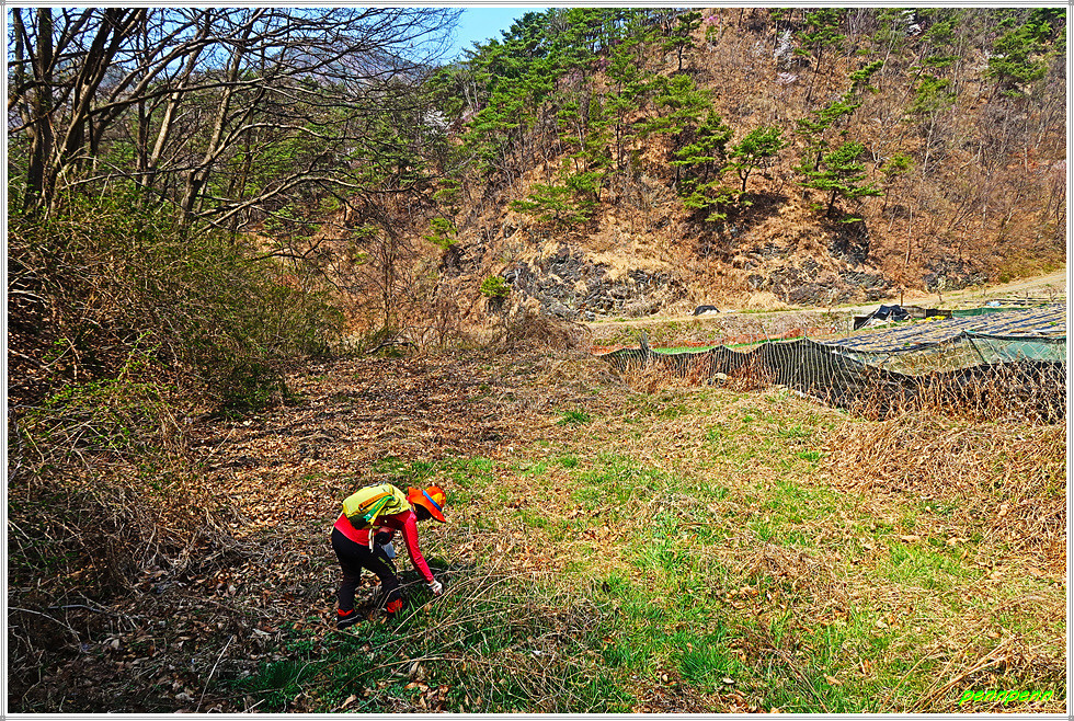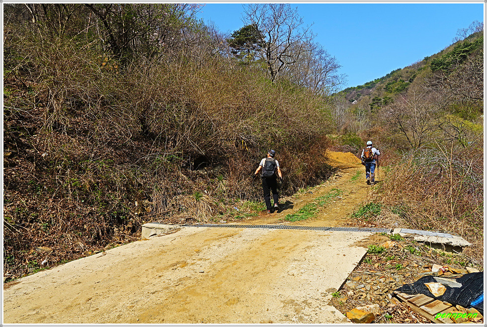 남대문1리 경로당을 지나면 남대문삼거리인데, 여기서 좌측 거구리방면으로 몸을 돌려세웁니다. 제법 큰 도로를 따라 가다가 거구리 경로당에서 우측으로 진입합니다. 포장된 길을 조금 가다가 비포장임도를 만나 안으로 들어서서 임도가 좁아질 즈음 좌측의 숲으로 발걸음을 옮겼는데 이제부터 고생길의 시작입니다. 오르는 비탈길은 그럭저럭 견딜 수 있지만 아무런 안전시설이 없는 급경사내리막 길은 바로 죽음의 길이기 때문입니다.