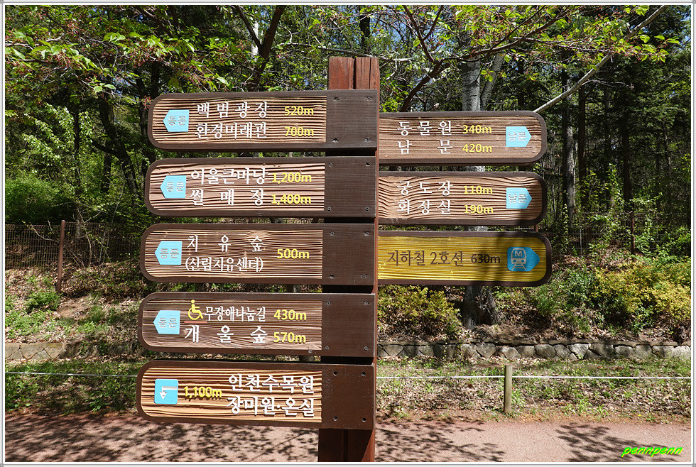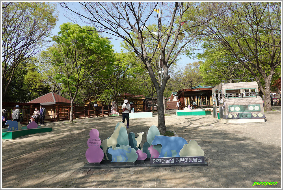 인천지하철 2호선 인천대공원역 3번 출구로 나오니 대공원 남문입니다. 남문을 들어서면 바로 우측에 어린이동물원이 있는데, 이는 가까이에서 사막여우, 타조 등 40여 종의 동물들을 관찰할 수 있는 어린이들의 동물 체험장입니다.