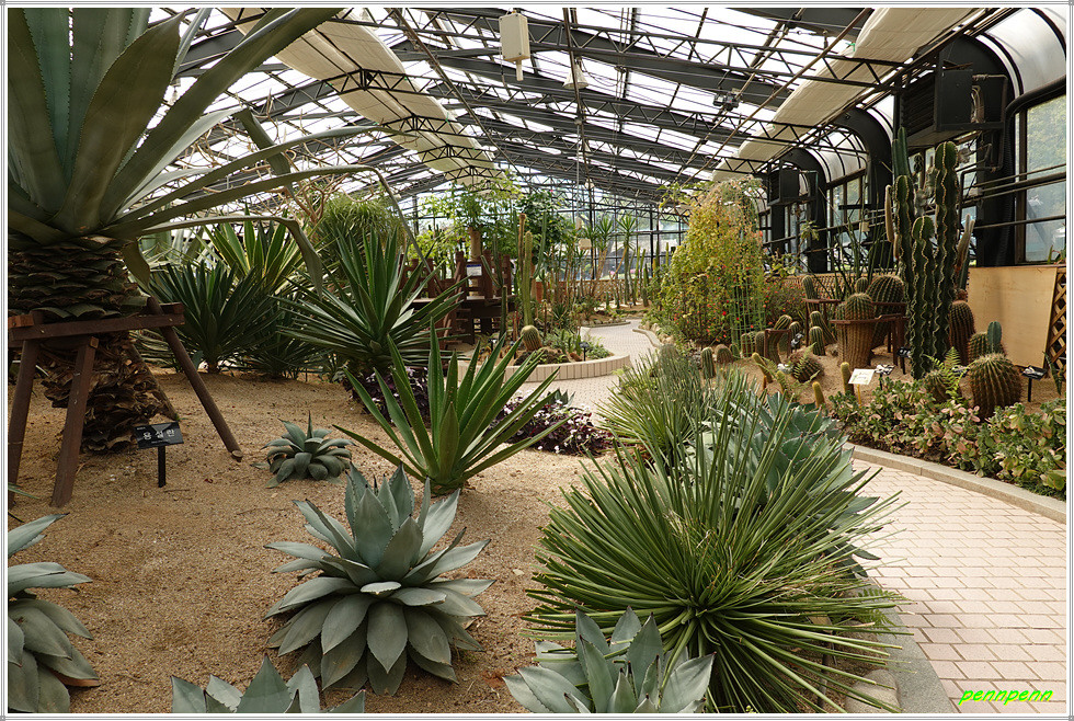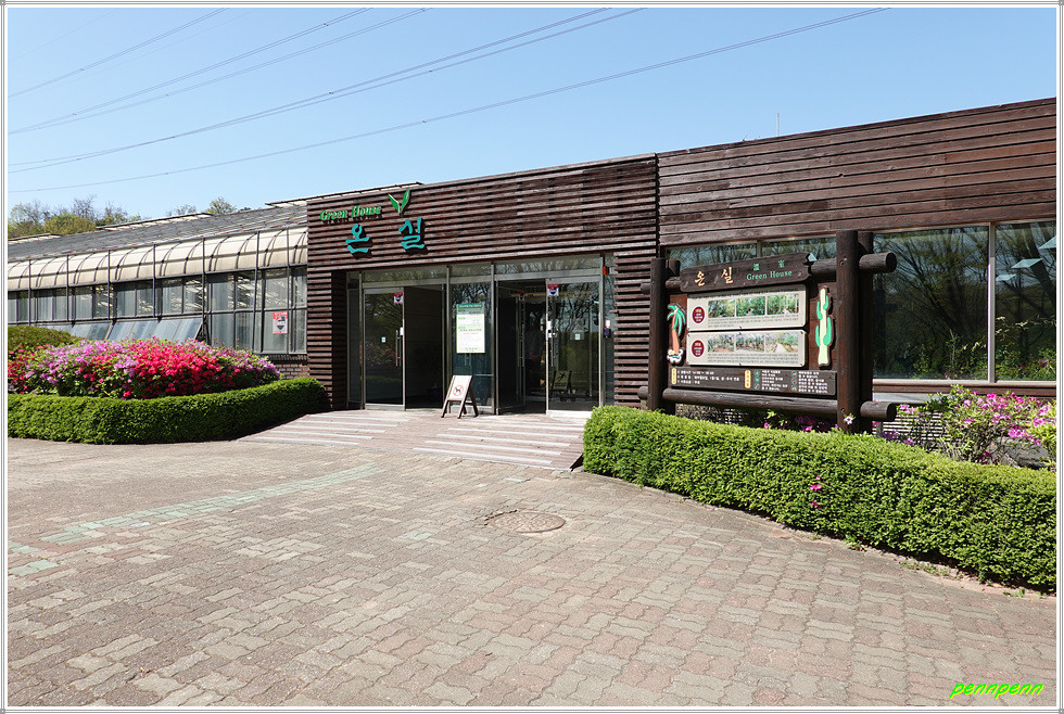 애인광장의 튤립을 다시 만나 발걸음을 옮기면 좌측 장미정원 옆에는 온실이 있습니다. 온실은 열대 및 아열대 식물과 다육식물을 수집전시하고 식물에 대한 이해를 돕고자 문을 열었습니다. 1온실은 열대와 아열대 식물전시원, 2온실은 다육식물과 선인장 전시원입니다.