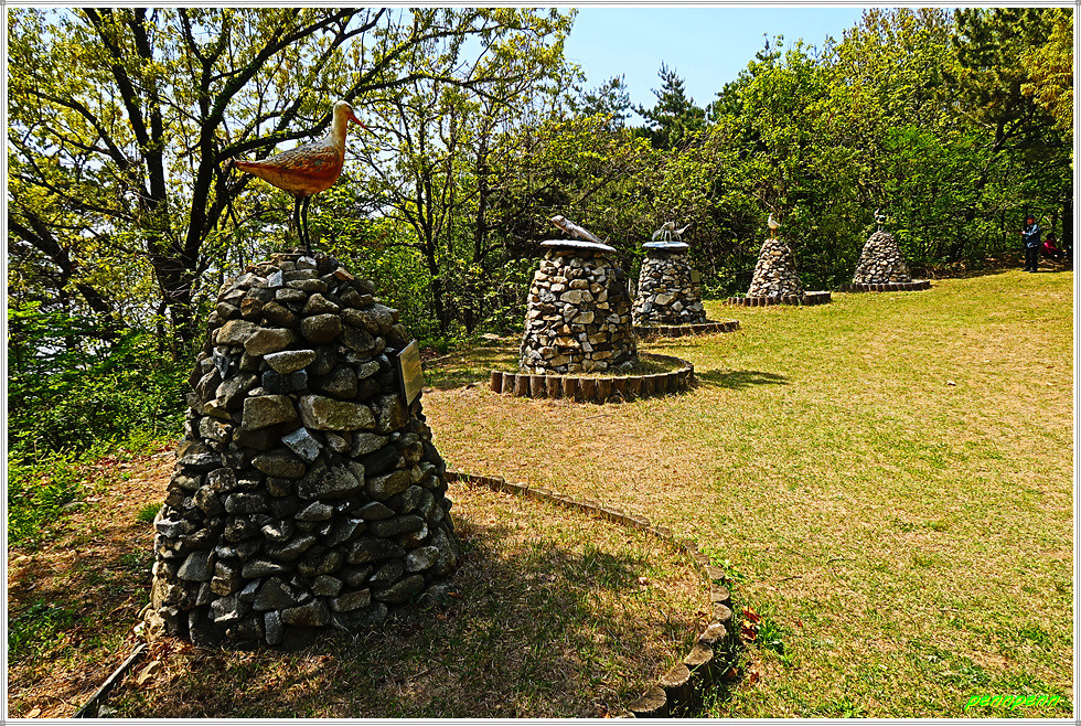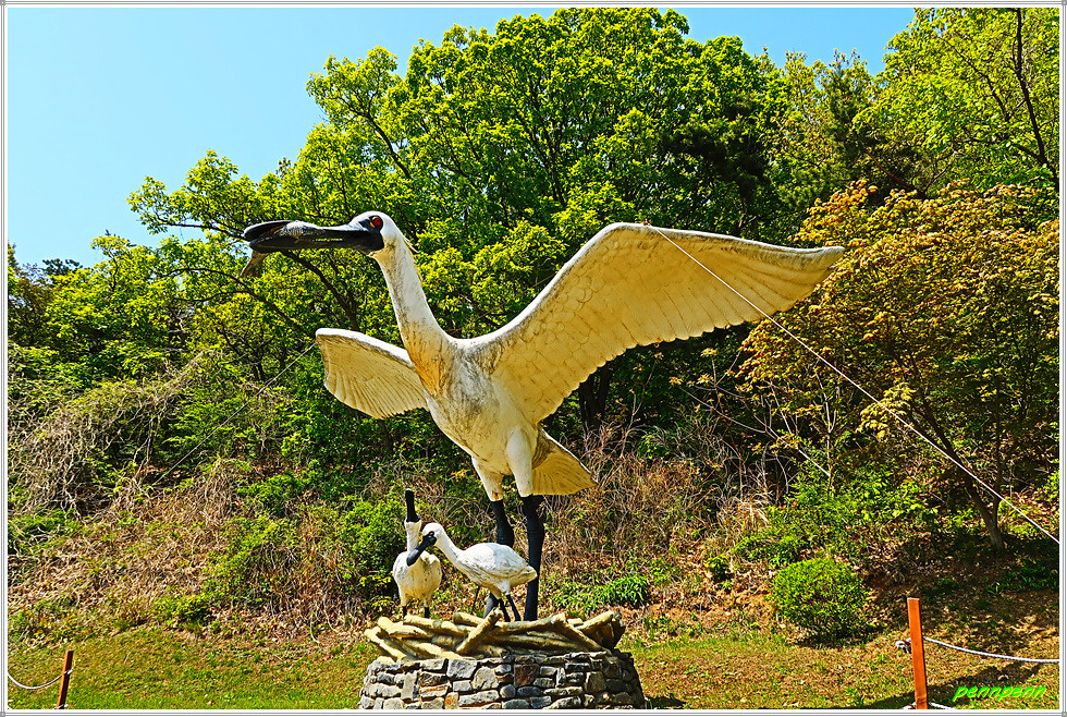 북일곶돈대에서 제법 긴 숲길을 빠져나와 방조제로 진입합니다. 해변가 데크를 통과하면 갈림길인데 좌측으로 갯벌센터가 있습니다. 거리표기는 없지만 위쪽으로 조금만 가면 갯벌센터입니다. 갯벌센터 앞에는 저어새 조형물이 있고 인근에는 돌탑에 각각의 새를 올려놓고 있습니다. 내부는 마침 학생들이 수업중이어서 그냥 잠시 바라만 보고 나왔습니다.