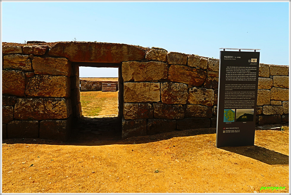 화도면 장화리 소재 북일곶돈대는 1679년(숙종 5년)에 쌓은 48돈대 가운데 하나로 미루지 돈대·장곶돈대·검암돈대와 함께 장곶보에 속했습니다. 돈대의 둘레는 122m, 석벽 높이는 130~350㎝로 시야각이 매우 넓어 경계 초소로서 탁월한 위치입니다. 숙종 때 강화유수 윤이제가 쌓은 것으로 함경도·황해도·강원도의 승군 8,000명과 경상도군위어영군사 4,300명이 동원되어 40일 만에 지었다고 합니다.