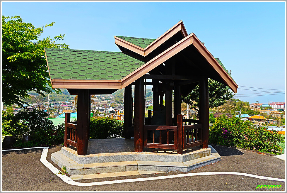 강화남부농협과 하나로마트를 지난 후 잠시 대로를 벗어나 좌측으로 들어간 길은 인천강화소방서 119산악구조대 앞에서 다시 대로(마니산로)와 합쳐져 Y자형 갈림길에서 대로를 버리고 약간 좌측의 비스듬한 오르막으로 갑니다. 성공회 내리교회로 가는 길목에는 서양민들레가 활짝 피어 있군요. 작은 고갯마루에는 내리교회가 있는데 강화군 화도면 내리 소재 성공회 내리교회는 100년이 넘는 오랜 역사를 가지고 있으며, 현재의 본당은 1982년 완공한 건물입니다. 건물 앞 종루는 마치 사찰의 종각을 보는 듯하네요.