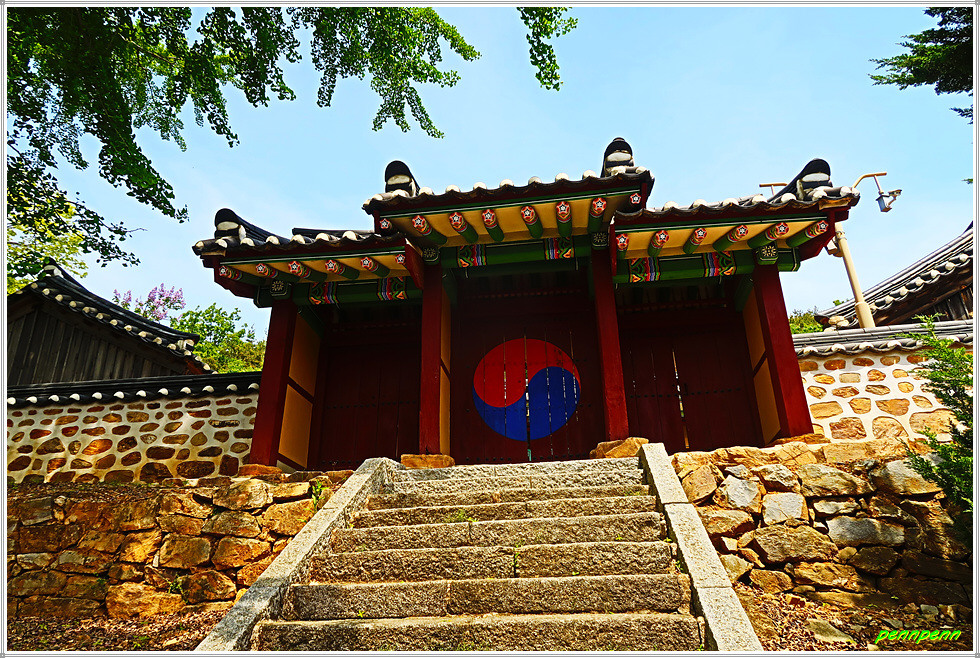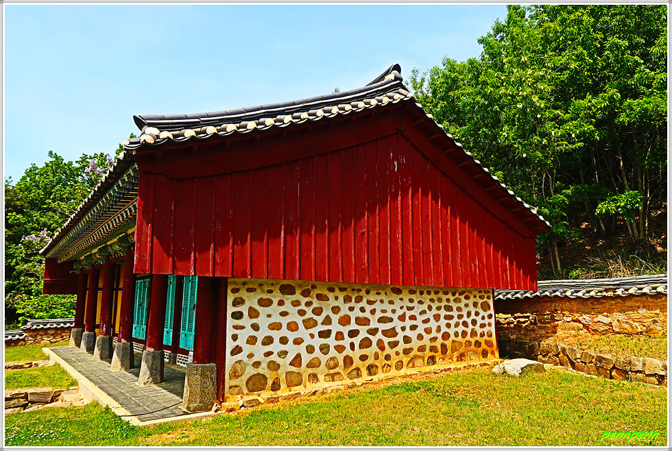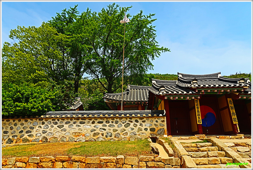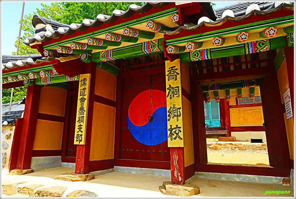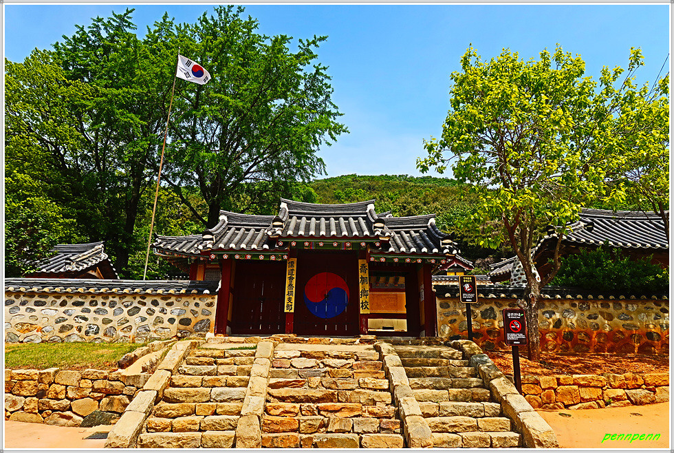 이 때 향교관리인이 필자에게 “꽃이 참 아름답지요”라며 인사를 건넵니다. 필자는 향교의 문이 열려 있어 잘 둘러보았다고 감사를 표했는데, 그는 “전에는 명륜당과 대성전 문도 열었지만 방문객들이 전시품을 만지는 등 부주의한 행등을 하는 바람이 부득이 문을 닫았다”고 대답합니다. 참 아쉬운 대목이로군요. 사실 현재 향교는 전국에 산재하고 있지만 대부분 문화재보호를 이유로 평일에도 문을 닫은 경우가 비일비재한데, 이곳은 출입문을 개방해 내부를 둘러 볼 수 있었음은 다행입니다.