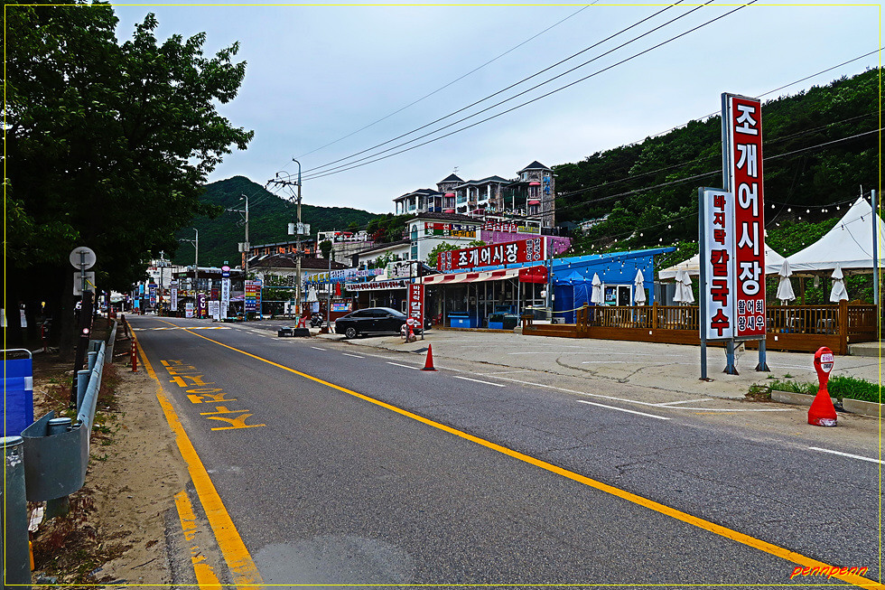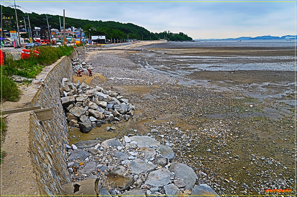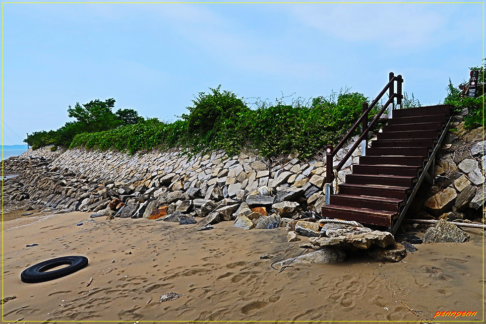 분오리 어판장 버스 정류장 옆은 분오리돈대입구로 이곳에 강화나들길 도장함과 동막해변가는 길이라는 안내문도 있습니다. 여기서 서쪽으로 조금 가면 바로 동막해변이지요. 화도면 동막리 소재 동막해변은 백사장과 울창한 소나무 숲으로 둘러싸여 천혜의 자연 경관을 자랑하고 있으며, 밀물 시에는 해수욕을 즐길 수 있고 썰물 시에는 갯벌에 사는 여러 가지 생물들을 관찰할 수 있습니다. 물이 빠지면 끝없이 펼쳐진 갯벌이 드러나면서 조개, 칠게, 고둥, 가무락 등 다양한 바다 생물들을 관찰할 수 있어 가족 단위의 여름 휴양지로 널리 알려져 있습니다.(자료/다음백과에서 발췌).