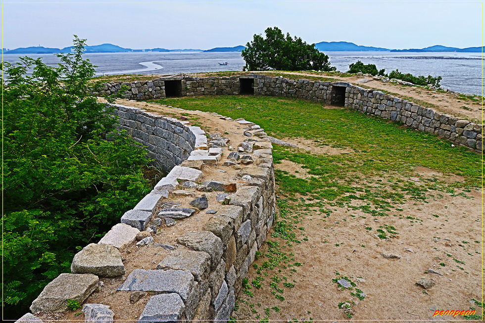 20코스의 들머리는 강화군 화도면 사기리 소재 분오리돈대(분오항)입니다. 강화여객터미널에서 4번 버스를 타고 75분 만에 분오리돈대에 도착합니다. 화도면 사기리 소재 분오리돈대는 조선 숙종 5년(1679) 강화유수 윤이제(尹以濟, 1628∼1701)가 왕실의 명령을 받아 쌓은 48개 돈대중 하나입니다. 강화도 돈대는 대부분 원형 또는 사각형인데 비해 이 돈대는 자연지형을 그대로 이용해 초승달 모양으로 축조한 것이 이채롭습니다.