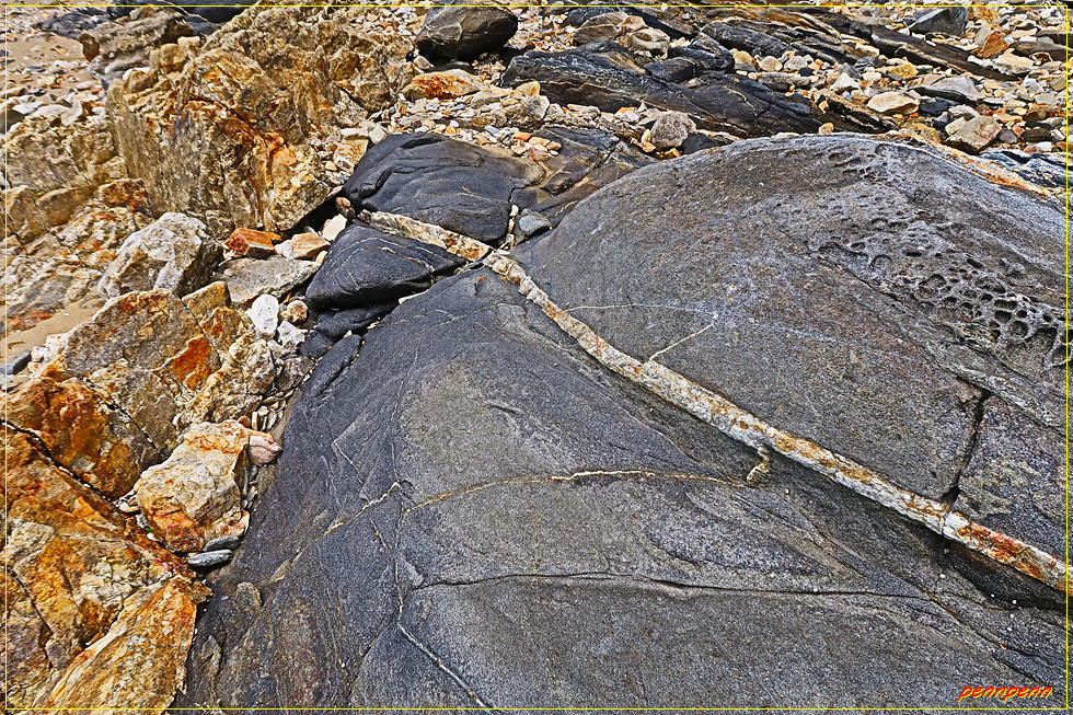 화도면 여차리 소재 미루지 선착장에서 현지 이정표에 의거 해안가로 진입합니다. 현재 밀물이기는 하여도 이곳은 지대가 다소 높이 염려할 필요는 전혀 없습니다. 그런데 해안가의 바위는 정말 좀처럼 볼 수 없는 기기묘묘한 모습입니다. 외관상 생김새는 기암이 아니지만 바위에 인공적으로 조각을 해 놓은 것 같은 줄이 쳐져 있기도 하고 이빨 모양의 암석이 다른 암석 속에 파고들어 마치 지네 같은 모양을 하고 있습니다. 대자연의 위대함에 감탄이 저절로 나오네요.