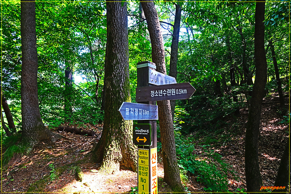 문의면사무소에서 우측으로 들어서서 미천8구경로당과 대한예수교 장로회 양성교회를 지나면 우측에 문의초등학교가 있습니다. 시골학교라서 그런지 넓은 운동장이 있어 학생들이 마음껏 뛰어놀 수 있을 것 같습니다. 이제부터는 양성산으로 갑니다. 작은 소류지(미천방죽)를 뒤로하고 완만한 길을 오르면 고갯마루 쉼터입니다. 여기서 좌측으로 200m를 가면 양성산 정상, 우측으로 600m 지점에는 팔각정인데, 우리는 양성산 정상을 왕복하기로 합니다.