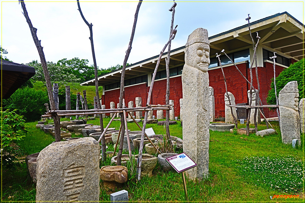 농경문화체험관 우측에는 장승 및 솟대마당인데, 장승은 이정표 또는 마을의 수호신 역할을 하며 주로 남녀 한쌍의 모양으로 마을입구에 세우며, 목장승과 석장승이 있습니다. 솟대는 마을 수호신 역할 또는 경계를 나타내거나 풍년을 기원하는 의미로 세우는데 끝에 오리 또는 기러기를 깎아서 답니다.