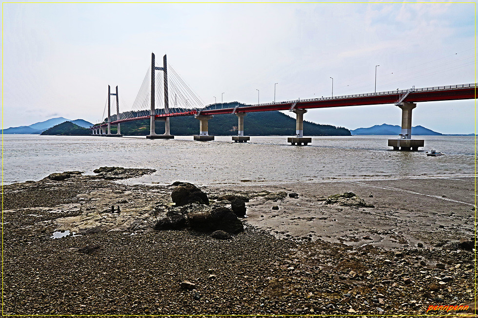 신안군 지도와 임자도를 잇는 임자대교는 두 개의 다리로 구성되어 있는데, 지도와 임자도 사이에는 작은 섬 수도가 있습니다. 지도와 수도를 잇은 임자2대교는 길이가 1,135m이며, 수도와 임자도를 잇은 임자1대교는 길이가 750m에 달합니다. 두 다리는 신안군의 12번째 다리로 2년 전 개통했는데, 붉은 색으로 단장한 임자2대교는 특히 주변경관과 잘 어울립니다.