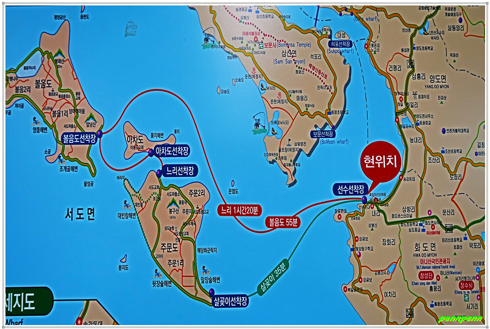 또한 12코스(주문도길) 및 13코스(볼음도길)는 강화군 화도면 내리 소재 선수선착장에서 출발하는 배편을 이용해야 하며 주문도행 선박(볼음도 경유)은 하루 세 차례 운행(첫배는 08시 50분 출항)하므로 시간계획을 잘 수립해야 할 것입니다. 필자는 시간 맞추기가 어려워 섬 두 개 코스는 산악회를 따라 갔습니다.
