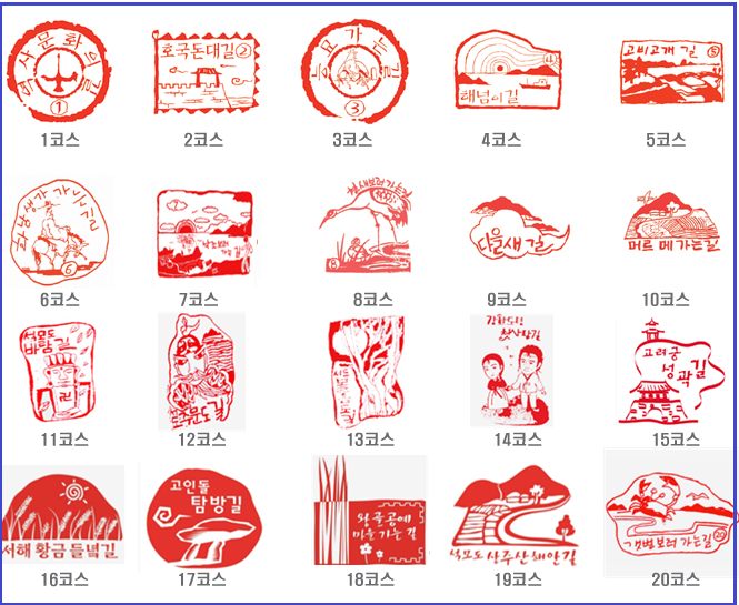 각 나들길의 기점과 종점에는 나들길 도장함이 별도로 비치되어 있으므로 반드시 여권에 인증도장을 찍는 것을 잊지 말아야 하겠습니다.(나들길 여권의 코스별 안내도에는 도장함의 위치가 표기되어 있음).