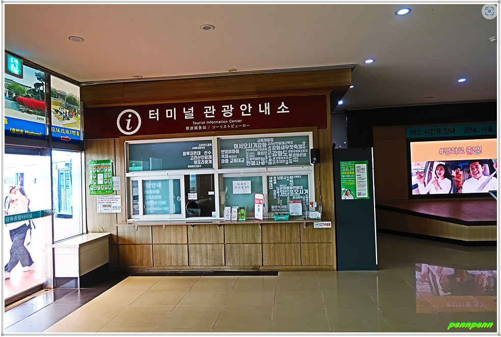 터미널에 들어서면 제일 먼저 터미널 관광안내소를 찾아야 합니다. 이 안내소는 월요일과 목요일은 휴무라고 해요. 안내소에서 나들길을 처음 시작한다고 말하면 강화나들길 도보여권과 코스지도를 무료로 제공해 줍니다. 나들길 여권에는 각 코스별로 시작점과 종점의 스탬프를 찍을 수 있는 공간이 있어 이를 완료하면 후일 나들길 완주인증증명서를 신청할 때 제출할 증빙자료가 됩니다. 또한 여권에는 코스별 안내지도가 있어 주요한 참고자료로 활용할 수 있습니다.
