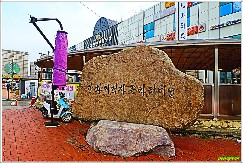 인천시 강화군 강화읍 남산리 소재 강화여객자동차 터미널은 대부분의 강화군 군내버스와 강화터미널을 기점으로 하는 경기도 시내버스, 서울행 직행좌석버스가 운행하는 버스 터미널입니다. 도로변에서 터미널로 들어서서 상점가를 지나면 터미널 대합실이 있습니다. 이곳 터미널은 나들길 1코스(심도역사문화길), 5코스(고비고개길), 6코스(화남생가가는 길)의 출발점이기도 합니다.