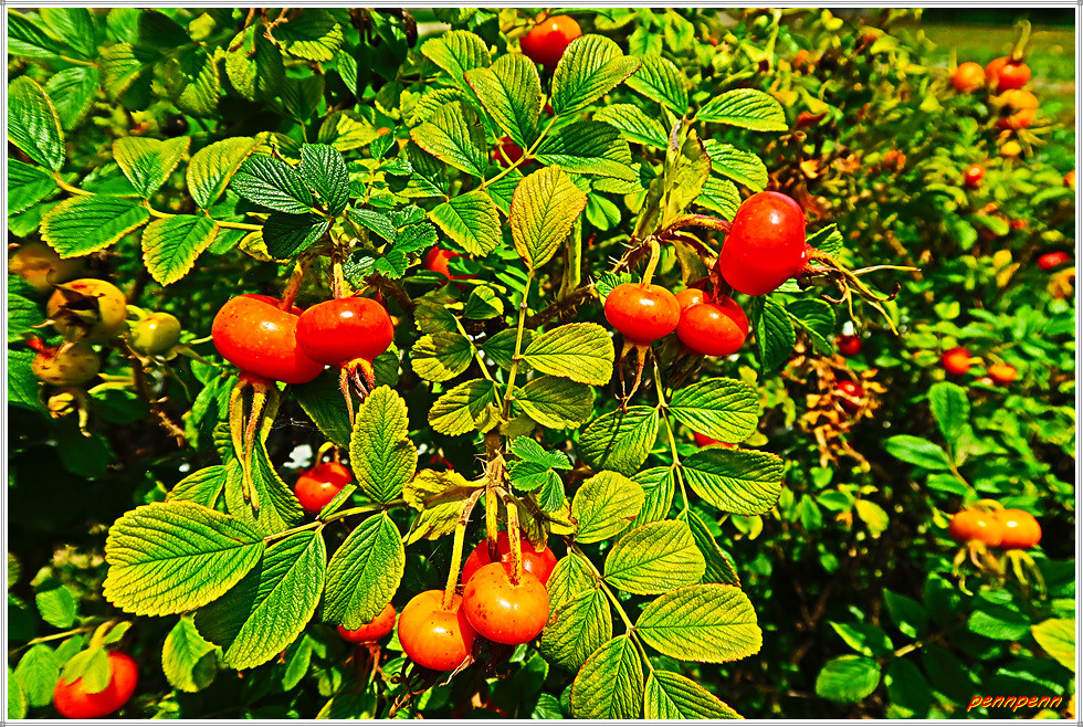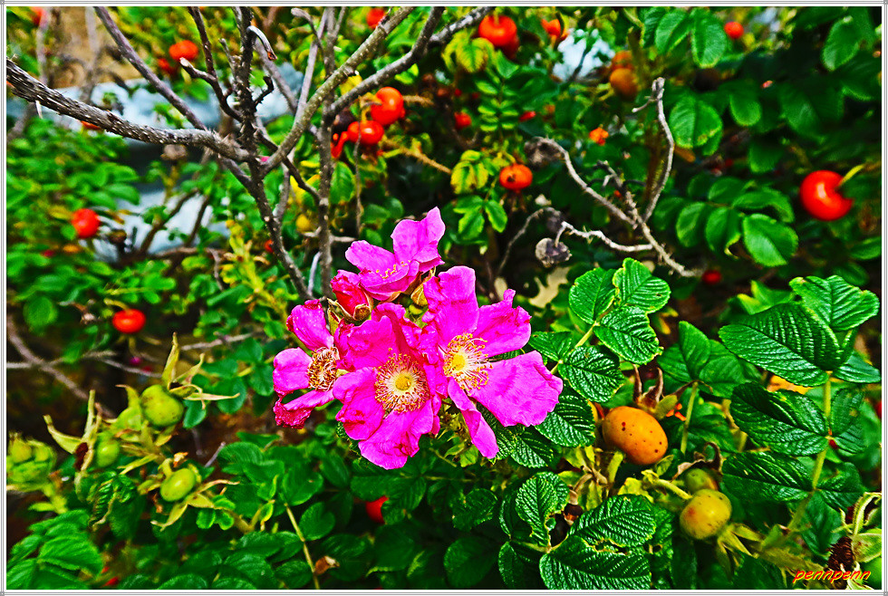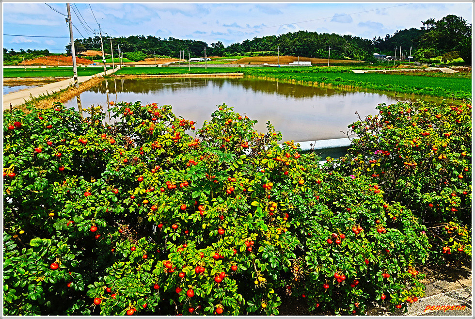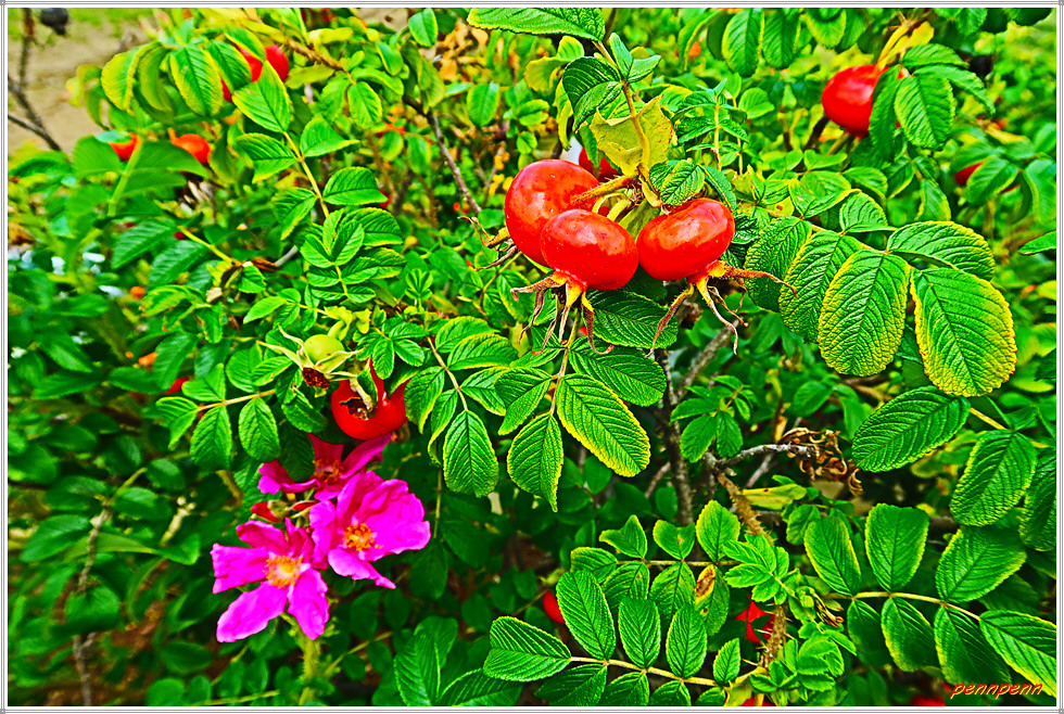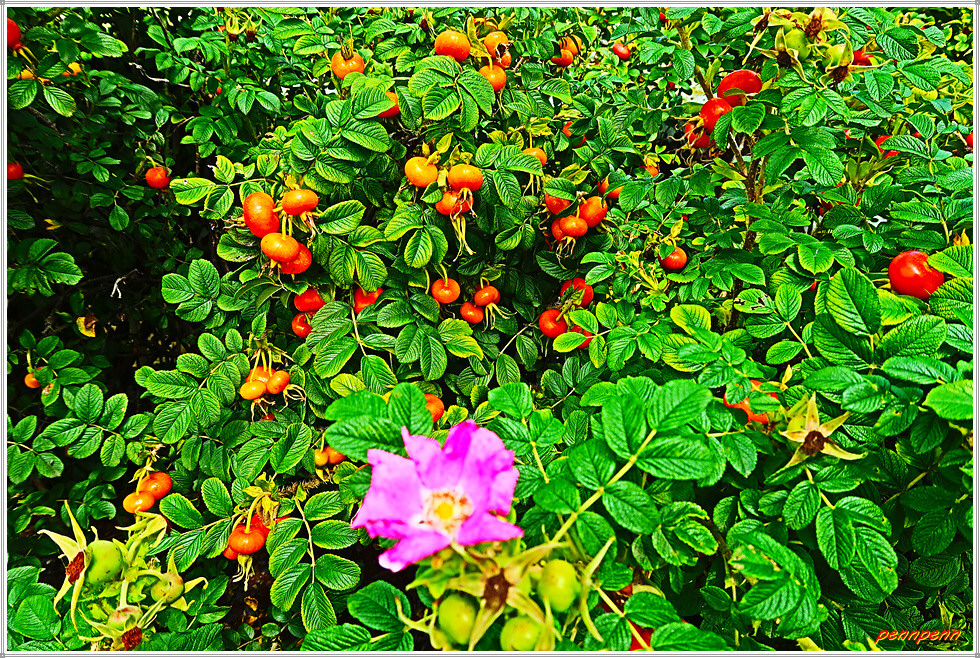 해당화는 꽃도 매우 아름답지만 그 열매도 정말 앙증맞고도 예쁩니다. 특히 꽃이 진 후 맺은 열매는 그 형상이 작은 토마토 또는 석류가 열려 있는 듯하며, 무리를 지어 달려 있는 모습에 감탄이 저절로 나옵니다.