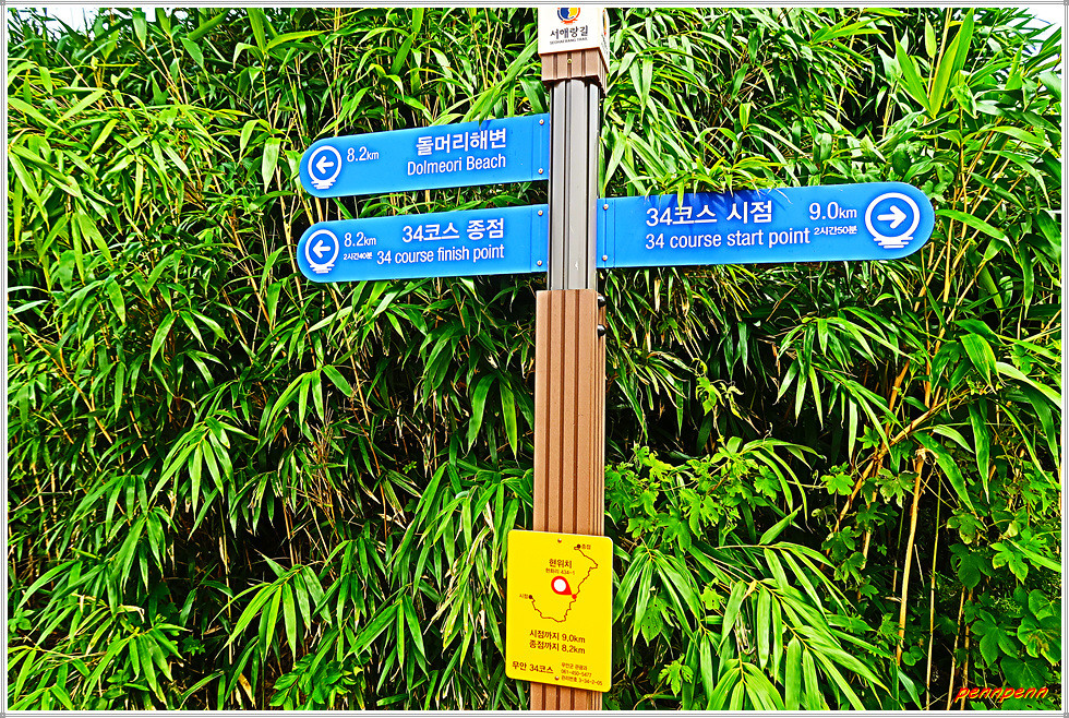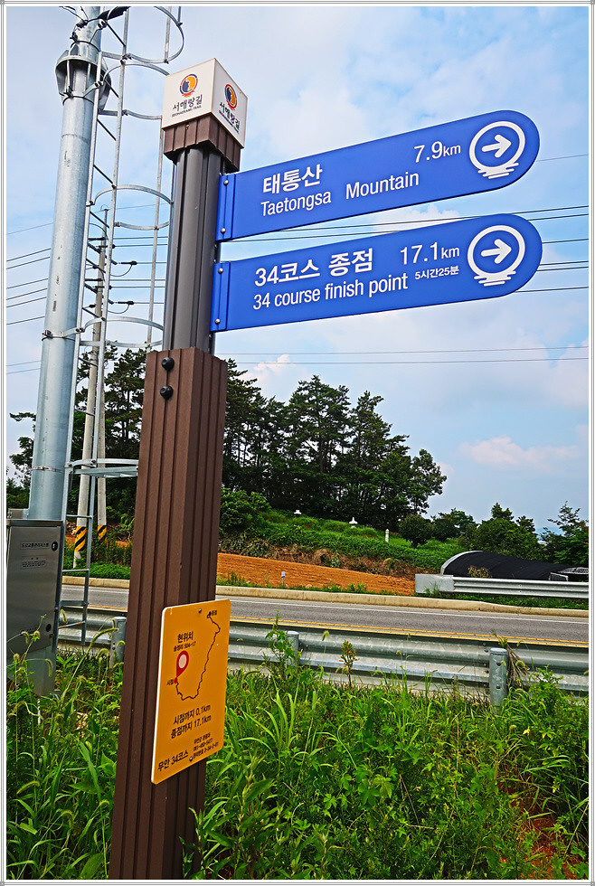 34코스의 출발지는 현경면 송정리 상수장3반버스정류장(현해로, 셰프스토리 옆)입니다. 그런데 일반적으로 출발지에 해당코스의 안내지도가 세워져 있기 마련인데 34코스의 경우 웬일인지 안내지도는 여기서 동쪽으로 약 100여 미터 떨어진 24번국도(송마로) 아래쪽에 있어 길을 걷는 이들을 헷갈리게 만듭니다.