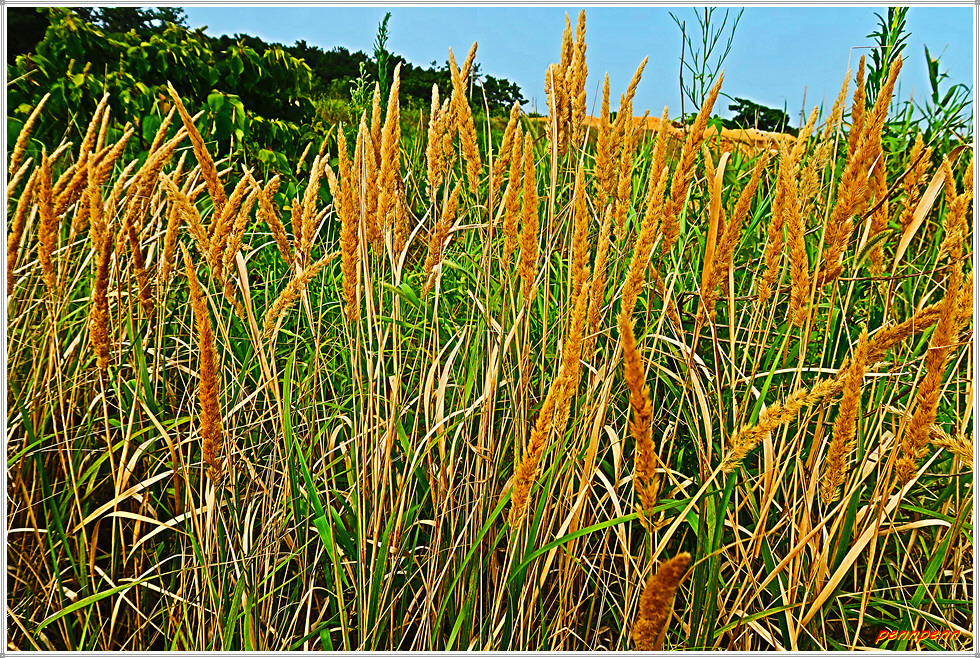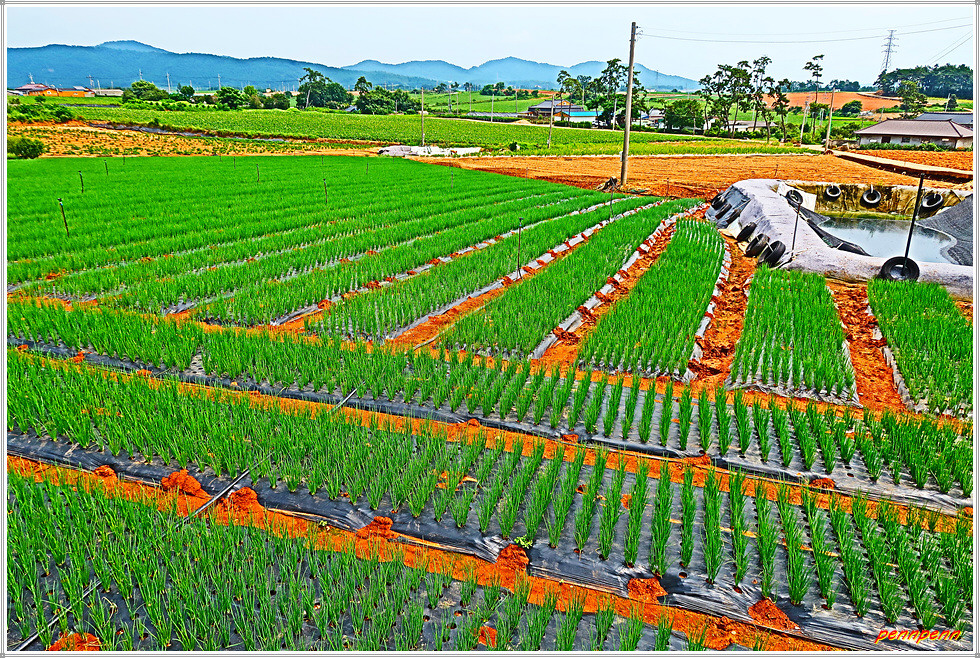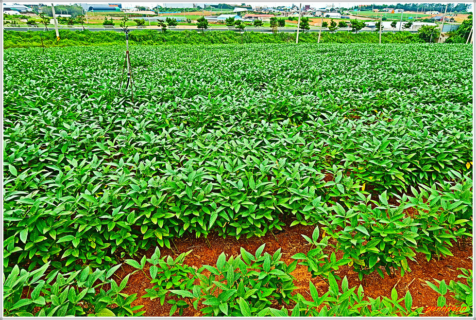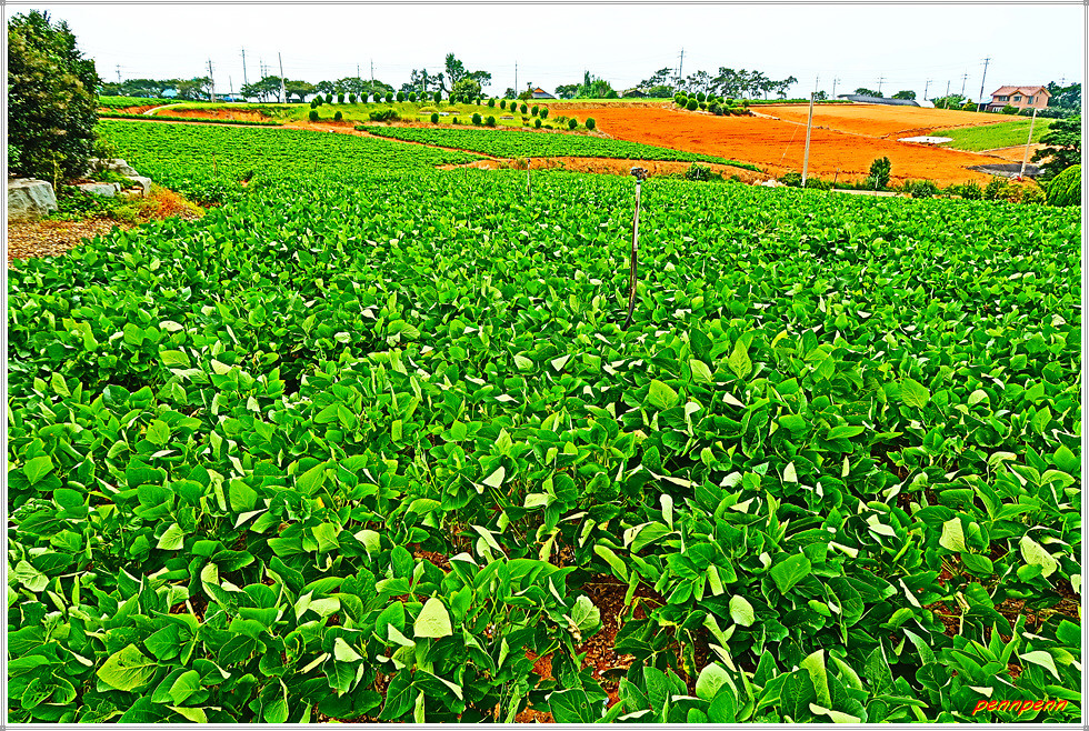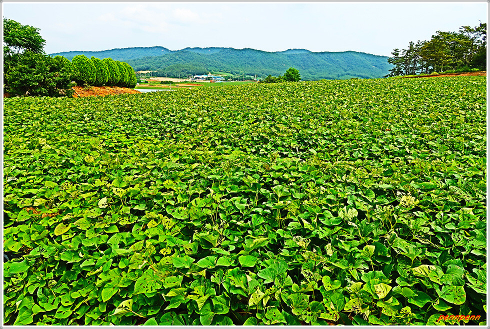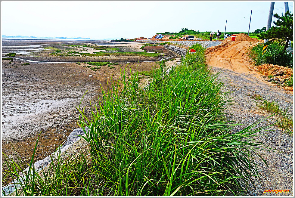 골목길을 들어서면 녹색의 넓은 들이 펼쳐집니다. 황토밭에서 자라는 고구마와 콩을 수확하면 주민들의 식탁은 풍성해질 테지요. 24번국도를 횡단하는 송정2육교를 건너면 좌측 갯벌로 이어지는데 방조제에는 강아지풀이 흐드러지게 피어 있어 잠시나마 발길을 멈추게 합니다. 곧 이어 해변을 벗어나 다시 24번국도 옆으로 가면서 우리축산을 지나 한참을 가다가 우측으로 몸을 돌려세웁니다. 고구마 잎사귀에는 벌레가 먹은 구멍이 숭숭하네요. 잎이 긴 콩은 콩나물제조용 콩이라고 합니다.
