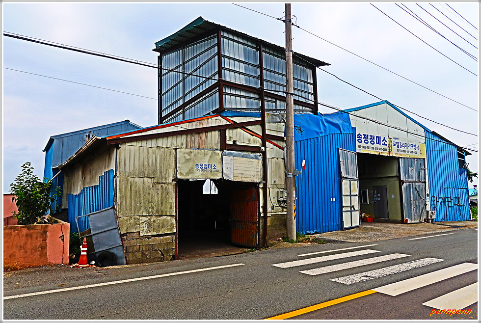 34코스 안내지도가 있는 곳에서 24번국도(송마로) 옆길을 따라 남동쪽으로 조금 가다가 송정교차로에서 우측으로 가면 현해로의 송정로터리인데 여기서 좌측으로 갑니다. 송정2리마을회관과 버스정류장 그리고 송정교회를 지나면 송정정미소인데 가까이 있는 하수장 버스정류장 맞은편 골목길로 들어가는 게 올바른 길입니다.