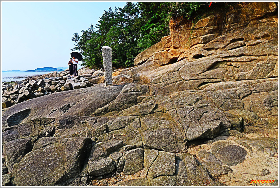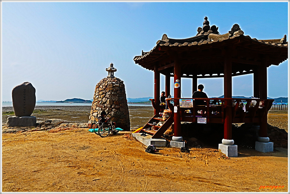 드디어 함평의 명소인 돌머리해변입니다. 함평군 함평읍 석상리 소재 돌머리해수욕장은 함평읍의 맨 서쪽 바닷가에 있으며 육지의 끝이 바위로 되어 있어 “돌머리”라는 이름이 붙여졌습니다. 돌머리라는 말을 한자로 써서 마을 이름도 석두(石頭)가 되었답니다. 해수욕장은 뒤편에 솔숲이 울창하여 경치가 아름다우며, 폭 70m, 길이 약 1㎞의 백사장이 있는 해수욕장은 물이 맑고 수심이 얕을 뿐만 아니라 일몰이 유명해 가족단위의 관광객들이 찾기에 좋습니다.