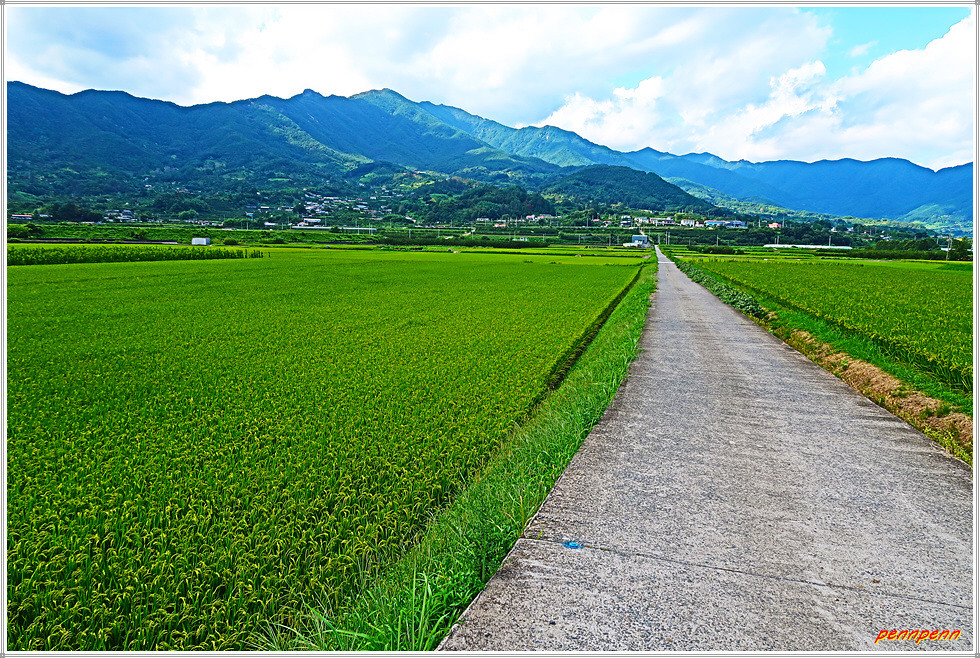 벅수를 뒤로하고 악양생활체육공원 방면으로 갑니다. 원래 둘레길은 대축마을표석이 있는 곳에서 축지교를 건너 악양천의 좌측 둑방길로 가야하지만 현재 악양천변에는 공사가 한창이어서 통행할 수 없기에 임시로 조성된 길을 따라 가는 것입니다. 대축보다 작은 마을인 소축마을 표석을 지나 하신대 버스정류장에서 좌측의 논길로 접어듭니다. 9월에 접어들어 하늘은 상당히 높아져서 전형적인 가을의 풍경을 보여주고 있지만 늦더위가 기승을 부려 쏟아지는 햇살이 매우 따갑습니다.