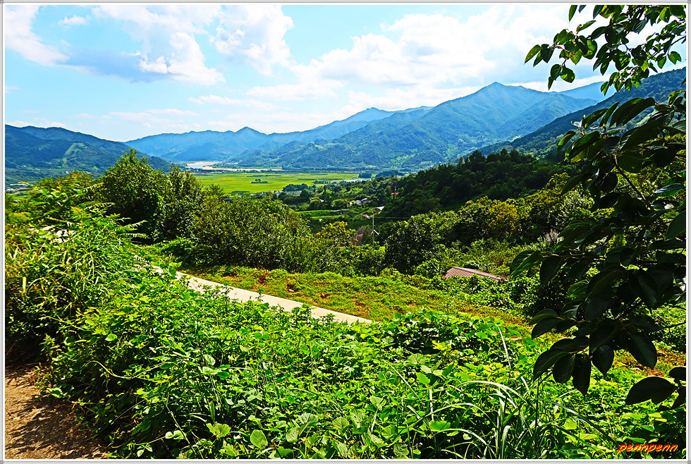 입석마을을 뒤로하자 오르막길이 계속됩니다. 뒤돌아보면 입석마을이 포근하게 자리하고 있는 모습입니다. 부춘마을에는 지리산 둘레길 안내지도가 잡초로 반쯤 묻혀 있습니다. 도로변 감나무에는 어느 새 감이 주렁주렁 매달려 있더군요. 기와집 마당에 널어둔 빨래는 9월의 태양아래 잘 마를 것입니다. 입석상저수지 옆을 지나 신선대 구름다리를 보면서 서서히 고도를 높입니다. 여기서도 광양 백운산과 섬진강의 모습이 아련하게 조망됩니다.