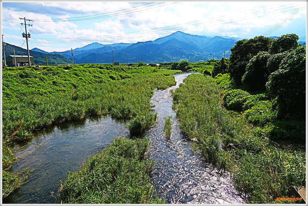 악양 성두 면단위 하수처리시설 설치사업장을 지나 악양천으로 흘러드는 신성천의 다리를 건넌 후 악양천에 놓인 아취형 교각이 멋진 다리를 건너 악양천변을 걷습니다. 다리 위에서 남서쪽을 바라보면 섬진강 너머 광양의 명산인 백운산(1,222m)이 삼각형 모양으로 우뚝합니다. 이곳에서는 성제봉 능선의 신선대 구름다리를 더욱 가까이에서 볼 수 있군요.