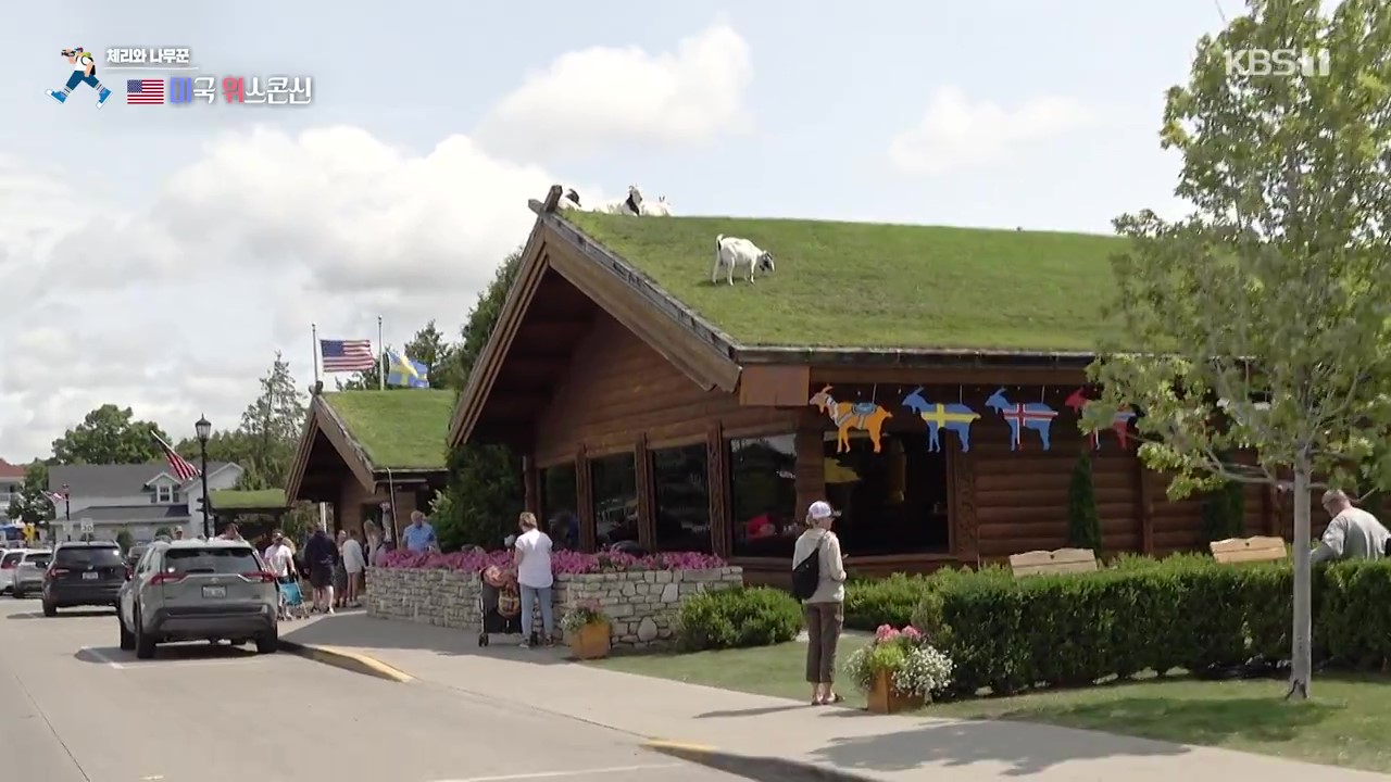 북유럽에서 이주해온 사람들은 지붕에 진디를 길러 염소를 키우기도 합니다. 사람들은 체리과수원에서 체리따기 체험에 참여합니다. 그런데 체리는 기계로 나무의 밑둥을 흔들어 따기도 합니다.