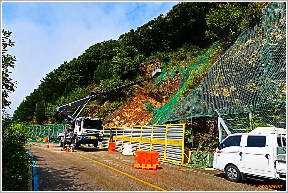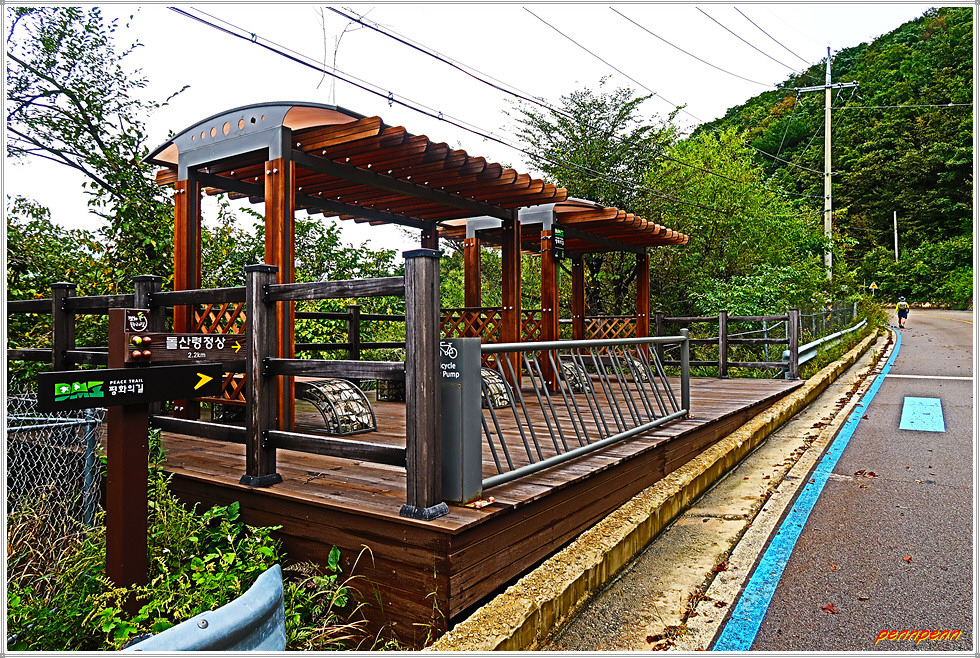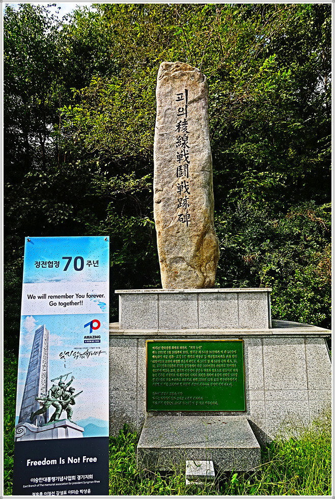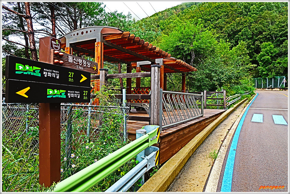 탱크저지선을 지나면 우측에 물이 흐르는 펀치볼 둘레길 쉼터가 보입니다. 출입이 금지된 펀치볼 둘레길을 뒤로하면 453번 지방도로와 만나는 돌산령터널 출구 삼거리(해안입구)입니다. 오늘 약 11km를 걷는데 3시간 남짓 소요되었습니다. 원래 거리는 16km이지만 체력이 달려 약 5km를 단축한 탓입니다. 오늘 피의 능선 전투전적비와 도솔산 전투위령비를 만나 6.25전쟁 때 나라를 지킨 위대한 장병들의 고귀한 희생을 다시금 기억하게 되었으며, 무엇보다도 돌산령 전망대에서 본 펀치볼(해안지구)의 절경에 취한 하루였습니다.