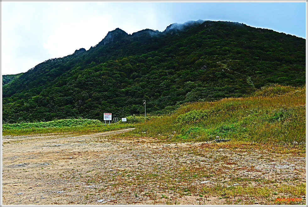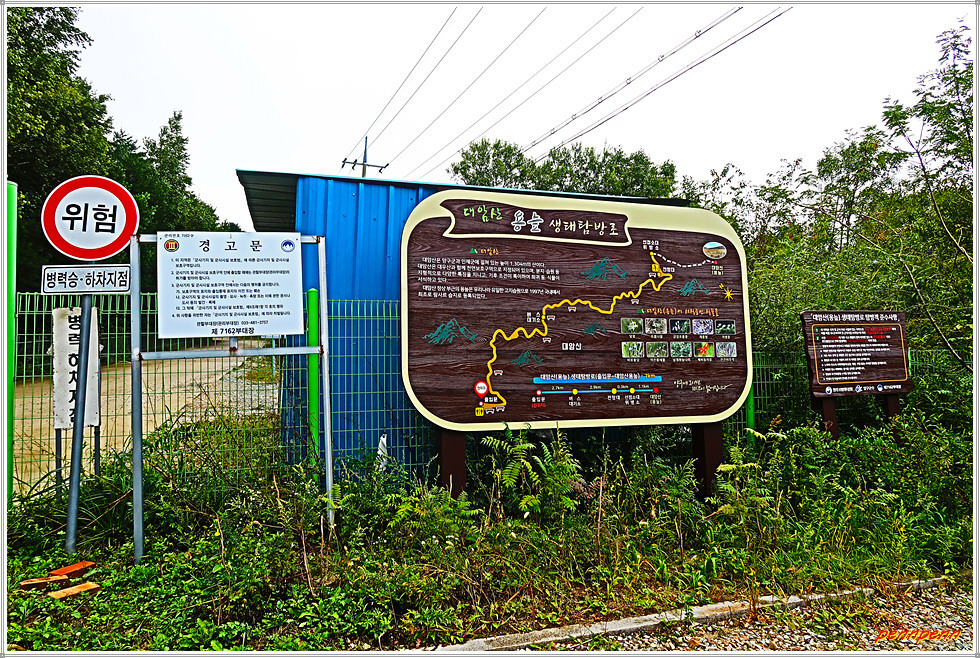 그런데 이곳에서 목적지인 해안입구까지의 거리는 16km이지만 해발 1,050m에 달하는 돌산령 정상을 넘는 게 만만치 않아 체력이 달려 부득이 단조로운 길 약 5km를 단축해 돌산령 터널 위 구(舊) 도로 상의 “대암산 용늪가는 길 입구”에서 출발합니다. 양구군과 인제군에 걸쳐 있는 대암산(1,304m) 용늪은 천연보호구역 및 람사르 습지로 등록되어 있어 반드시 사전예약을 통해 방문할 수 있는 곳인데 여기가 그 입구인 것입니다. 여기서 돌산령 정상까지는 오르막길로 4.7km를 가야하므로 결코 만만한 코스가 아닙니다.