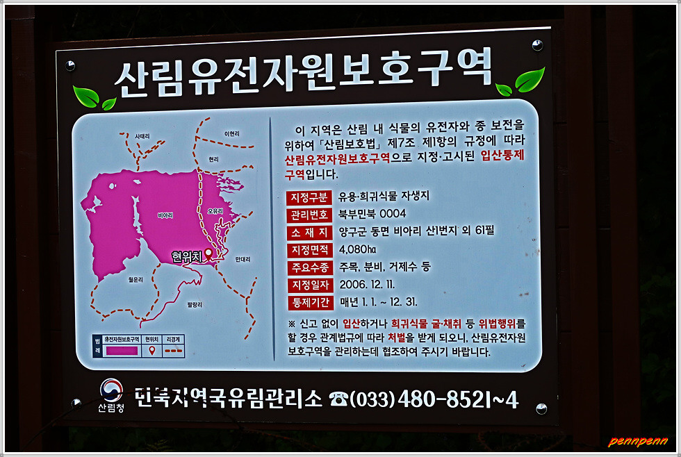 이번에는 강원도 평화누리길 양구구간입니다. 양구군은 우리나라 국토의 정중앙이 위치한 곳으로 북으로는 휴전선을 사이에 두고 있으며, 중부내륙산간에 위치해 대륙성 기후의 특성이 나타나 기온은 연교차가 매우 심한 지역입니다. 생태계의 보고를 그대로 간직한 땅 양구의 DMZ 특히 두타연은 한국전쟁이후 50여 년간 출입이 통제되었다가 2004년 개방되어 원시자연의 아름다움을 그대로 간직하고 있습니다. 양구군은 5개의 읍면으로 구성되어 있으며 인구는 21천 여 명입니다.