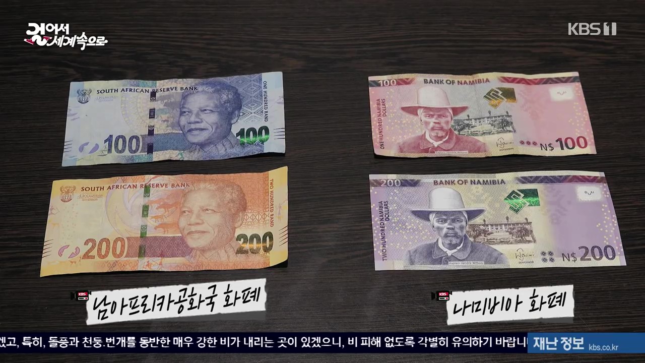 아프리카 남서부 소재 나미비아의 국토면적은 한반도의 약 3.7배, 인구는 약 260만명, 수도는 빈트후크입니다. 나미비아는 제국주의시대 독일의 식민지였고, 1차 세계대전 후 남아공의 통치를 받다가 1990년 독립한 나라입니다. 빈트후크 시내에는 독일인이 세운 루터교회가 있고 그 옆에 독립기념관이 있습니다. 기념관 앞 초대대통령 샘 누조마 동상은 북한이 완공한 것이랍니다. 나미비아 달러는 남아공의 화폐와 1:1로 통용된다는군요.