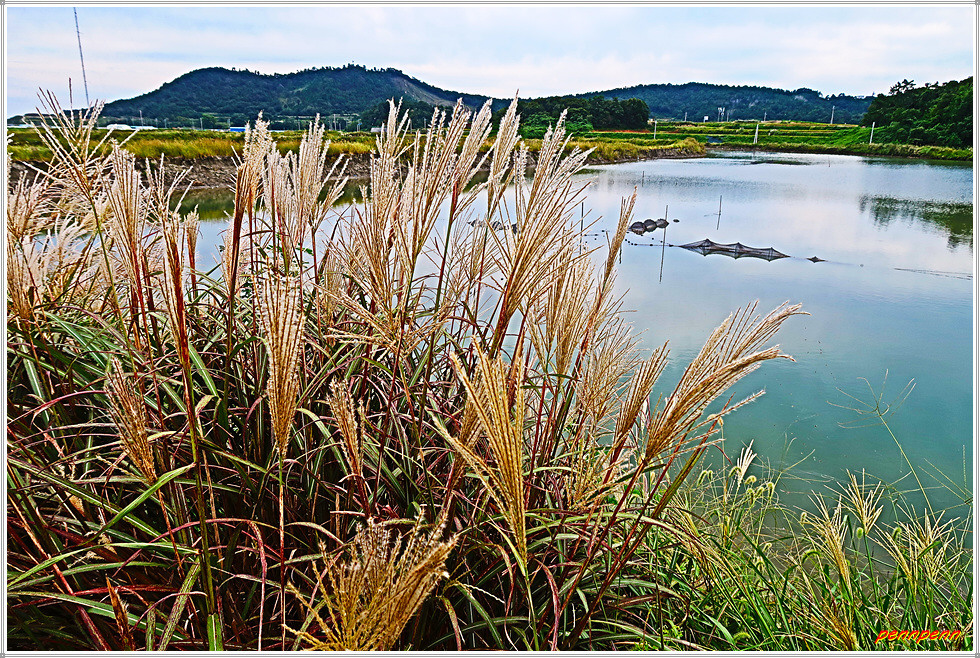 37코스의 출발지는 영광군 염산면 봉남리 합산버스정류장입니다. 출발점에는 서해랑길 37코스 안내지도와 칠산갯길 300리 생태탐방 안내도가 붙어 있습니다. 목적지까지의 거리가 19.6km로 두루누비 홈페이지에 기록되어 있는 거리 19.9km와는 약간 차이가 있군요. 좌측 월평항 2.4km 이정표를 따라 갑니다. 좌측의 바다는 썰물이어서 갯벌이 훤히 드러난 상태입니다. 제방에는 가을을 상징하는 억새가 피어 있군요.