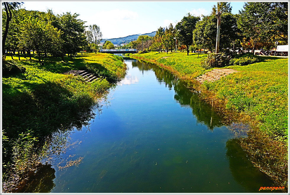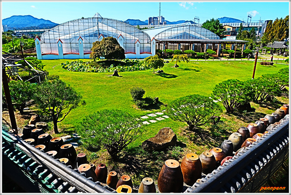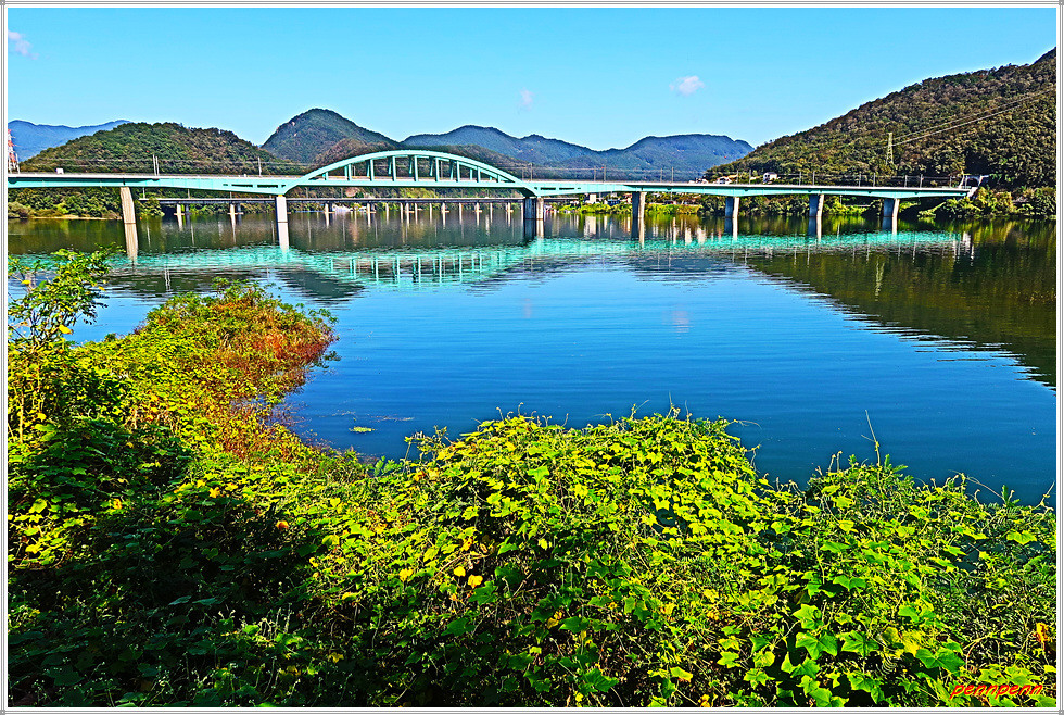 북한강으로 합류하는 달천천을 따라가면 교량이 있는데 좌측에 보이는 큰 규모의 비닐하우스처럼 보이는 시설물은 이화원 식물원입니다. 이화원은 세계 여러 나라의 나무를 보유한 온실식물원인데, 기와담장 안쪽에는 옹기들을 두 줄로 가지런하게 놓아두어 한국의 전통적 분위기를 잘 연출하고 있지요. 이곳에서 바라보는 달천천의 모습도 참 좋습니다.