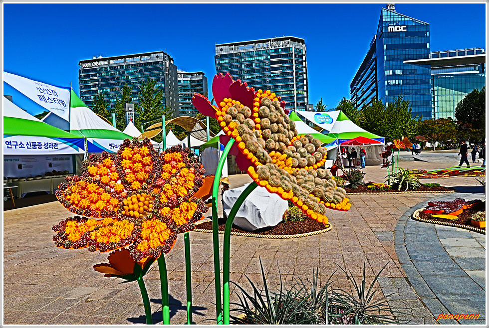 수도권전철 3호선 정발산역 1번 출구로 나와 일산문화광장을 지나면 일산호수의 한울광장으로 이어집니다. 한울광장에서 고양꽃전시관으로 가는 길목에 제19회 선인장 페스티벌(10. 5∼10. 9)이 열리고 있습니다.