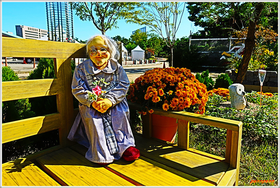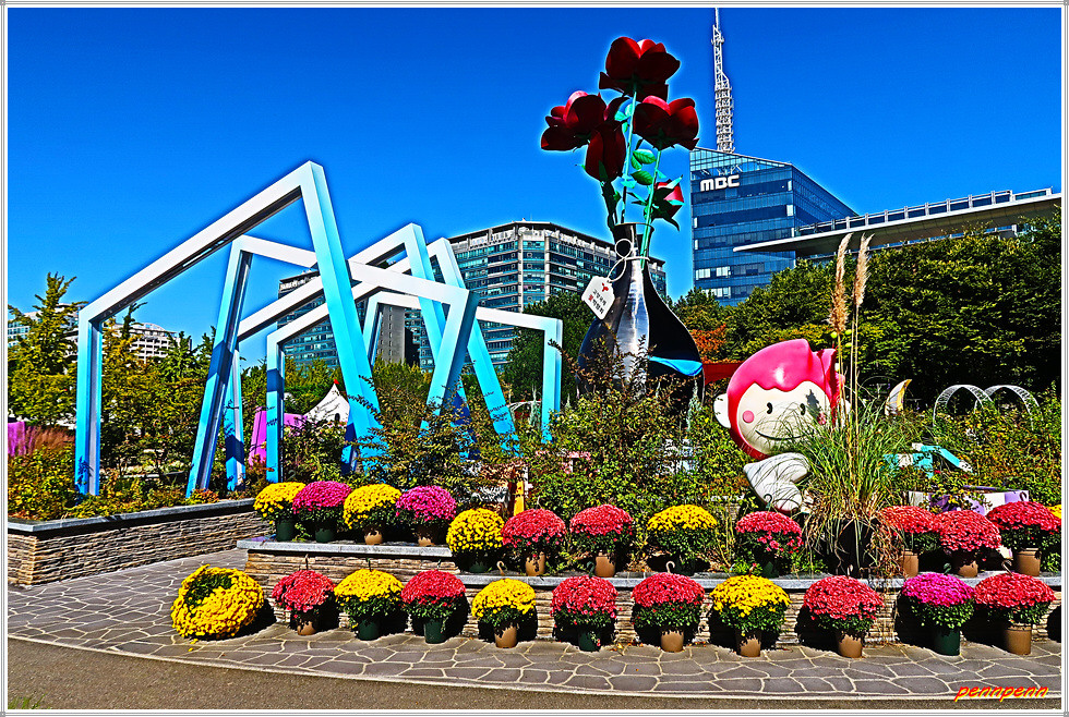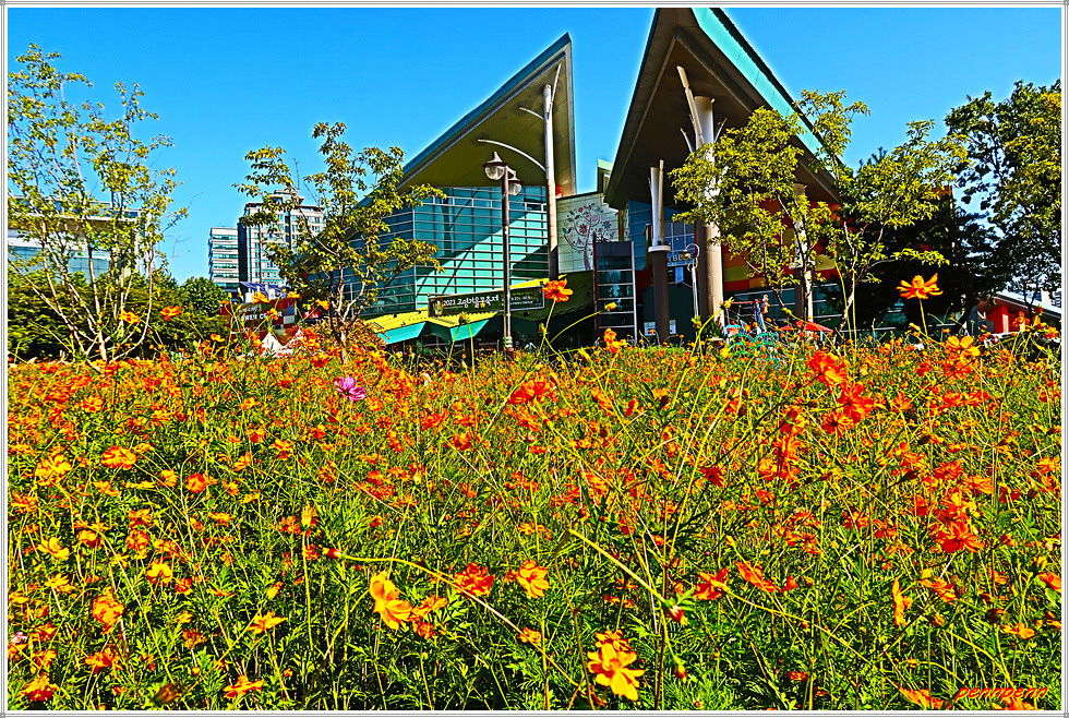 고양꽃전시관 앞 광장에는 황화코스모스가 많이 피어 있는 가운데 장미를 비롯한 각종 조형물은 지난 봄 국제고양꽃박람회 당시 조성한 장식품이 그대로 있어 신선한 맛은 다소 부족한 듯 보였습니다.