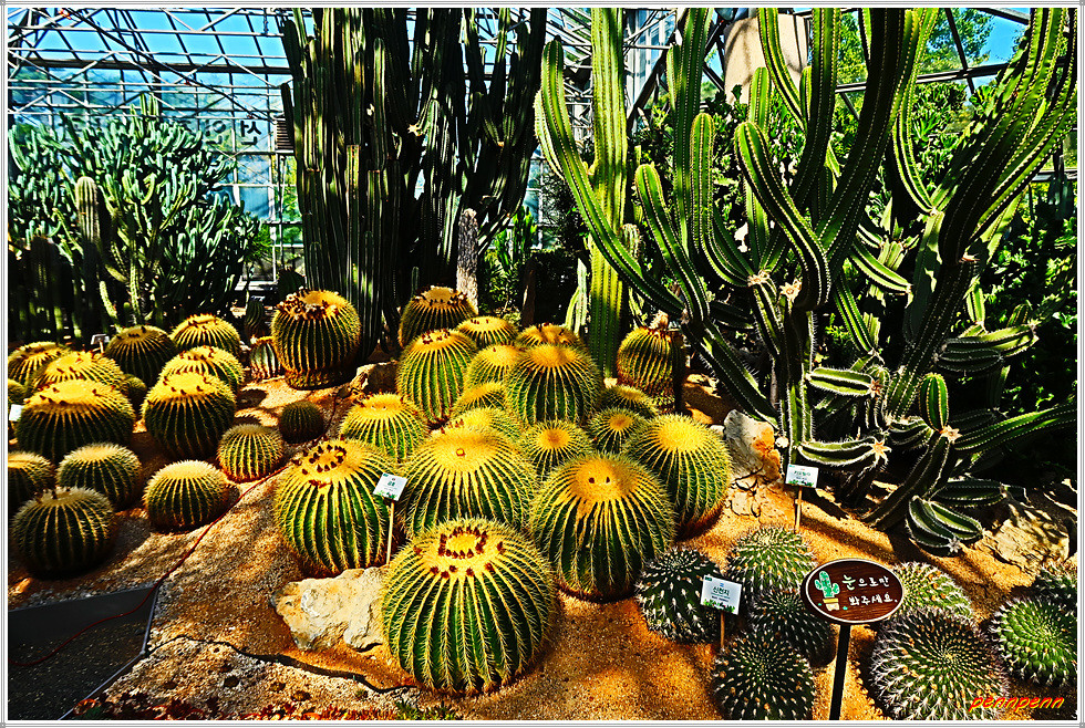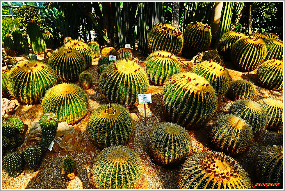 전시관과 이웃한 육묘장은 작은 선인장을 키우는 곳입니다. 이곳에는 시민의 쉼터와 직판장이 있습니다. 선인장은 일반적으로 최저 섭씨 5도에서 최고 35도로 유지하고 통풍이 잘되고 햇빛을 충분히 보게 해야 잘 자란답니다. 물을 주는 주기는 봄과 가을에는 1개월마다 아침에 한번, 여름과 겨울에는 2개월마다 저녁에 한번이므로 키우기는 쉬운 편이네요.