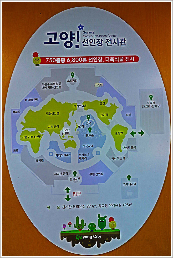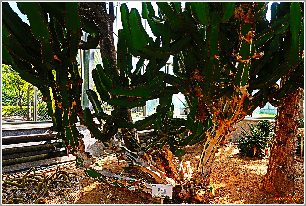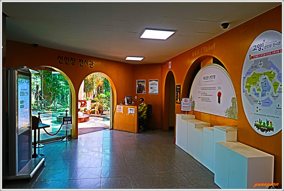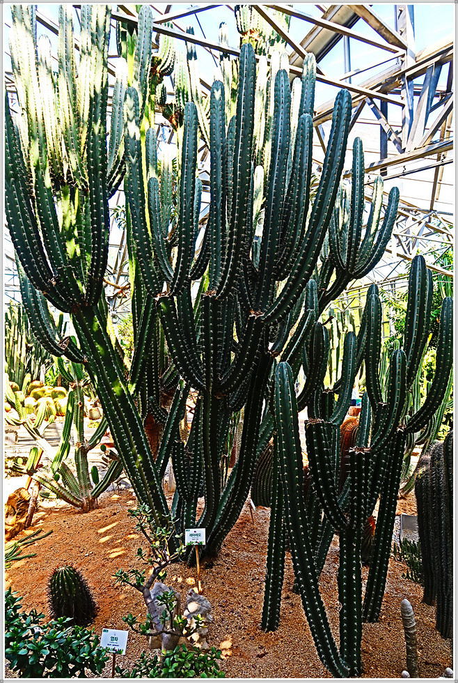 전시관 입장료는 1천원이지만 고양시민과 장애인, 국가유공자, 65세 이상 노인 등은 무료입니다. 안으로 들어서면 정말 많은 종류의 선인장이 있어 눈이 휘둥그레지게 되는데 키도 크고 밑둥 부분이 매우 굵은 선인장은 정말 우람합니다. 대부분의 선인장에는 이름표가 잘 부착되어 있어 가급적이면 이름도 함께 소개하겠습니다.