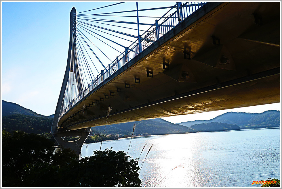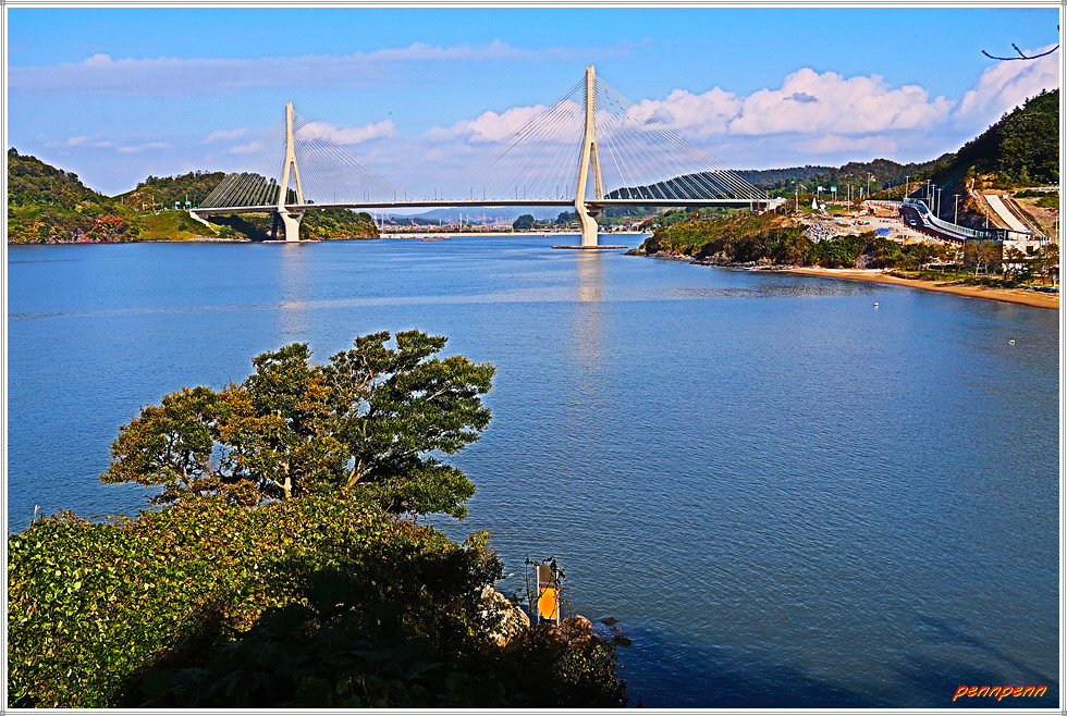영광대교는 전라남도 영광군 백수읍과 홍농읍을 잇는 2.2km 규모의 다리로 2016년 완공되었으며 주탑과 주탑 간 거리인 주경간장이 320m에 달합니다. 이 대교 완공으로 지역 간의 이동이 활발해 지면서 지역발전에 큰 도움을 주고 있으며, 인근 유명 관광지의 진입이 용이해져 관광산업에도 많은 도움을 주고 있는 다리입니다.