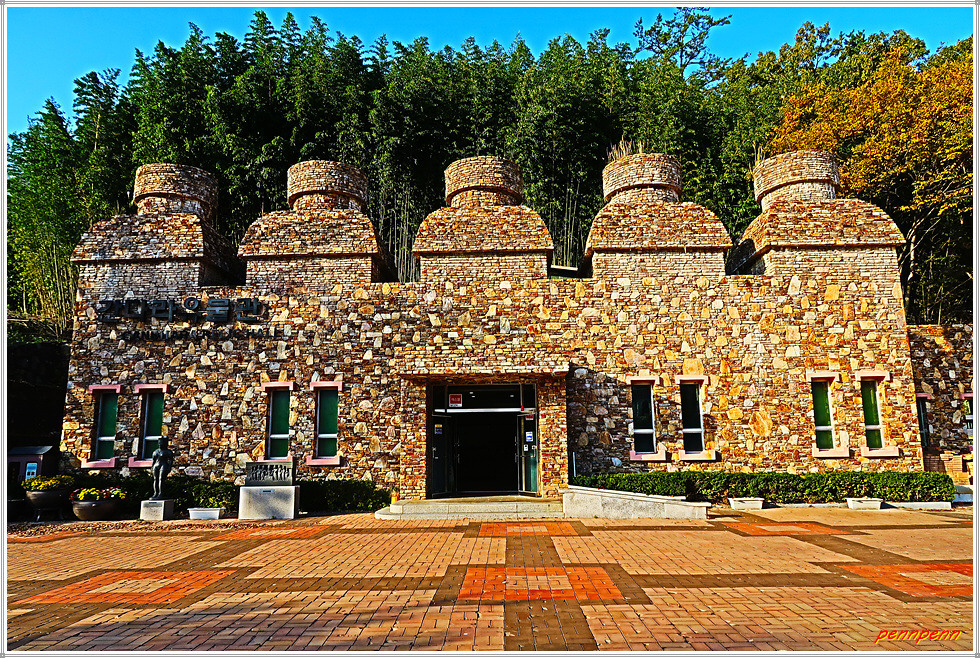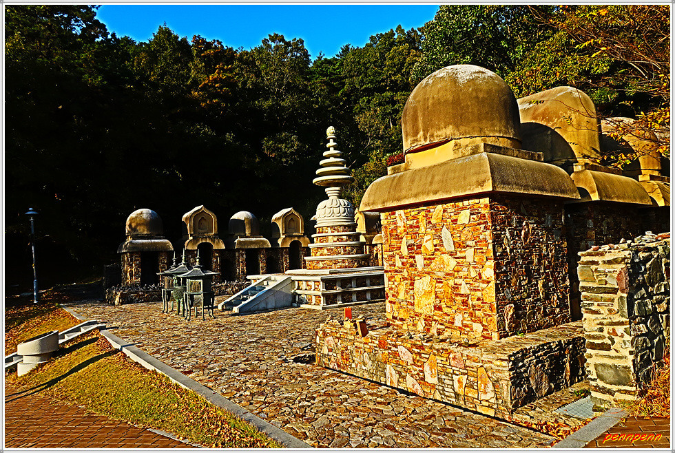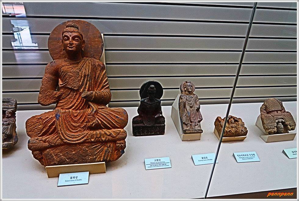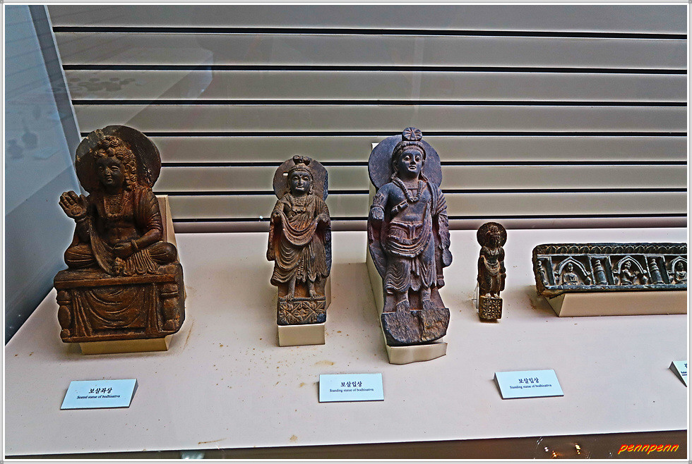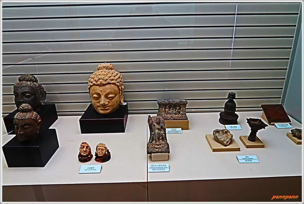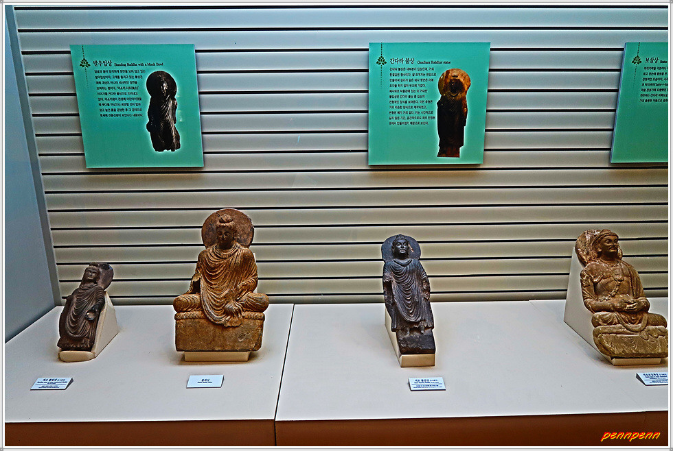 간다라유물관 우측 화장실이 위쪽에는 탑원(Pagoda)이 있는데 이는 대승불교와 불교예술의 본 고장인 간다라지역 사원 유구(遺構)가운데 가장 잘 보전되어 있는 탁트히바히 사원의 주탑원을 재현한 것으로 마라난타 존자의 출신지역인 간다라 사원양식의 대표적인 모습을 보여주고 있습니다. 탑원 우측에 있는 건축물은 체험관입니다.