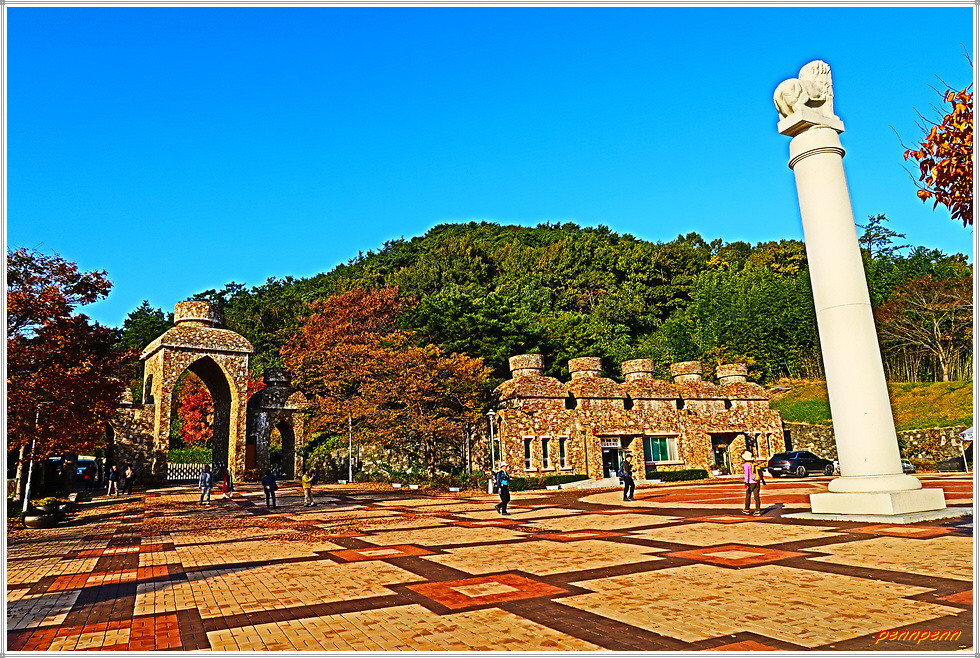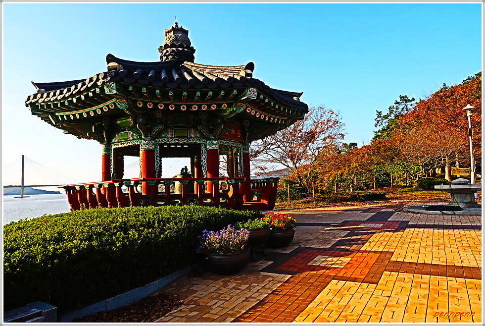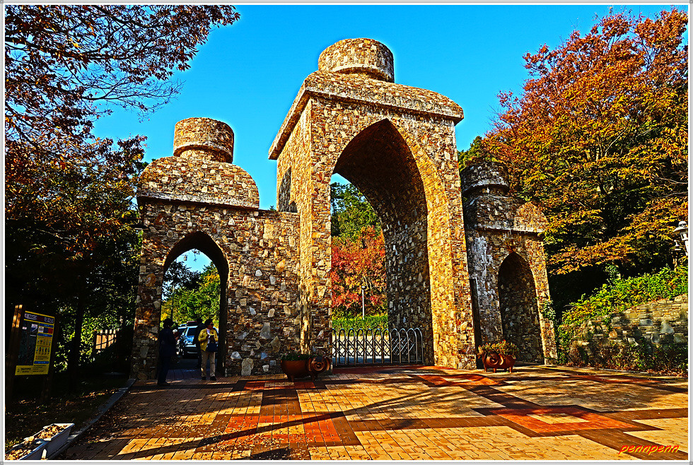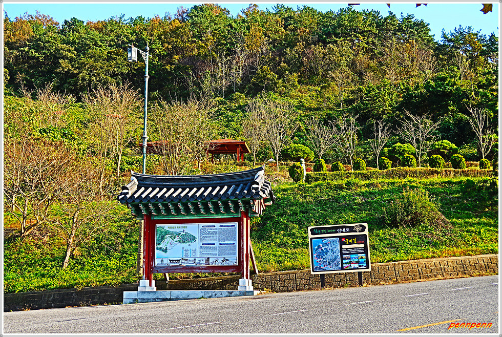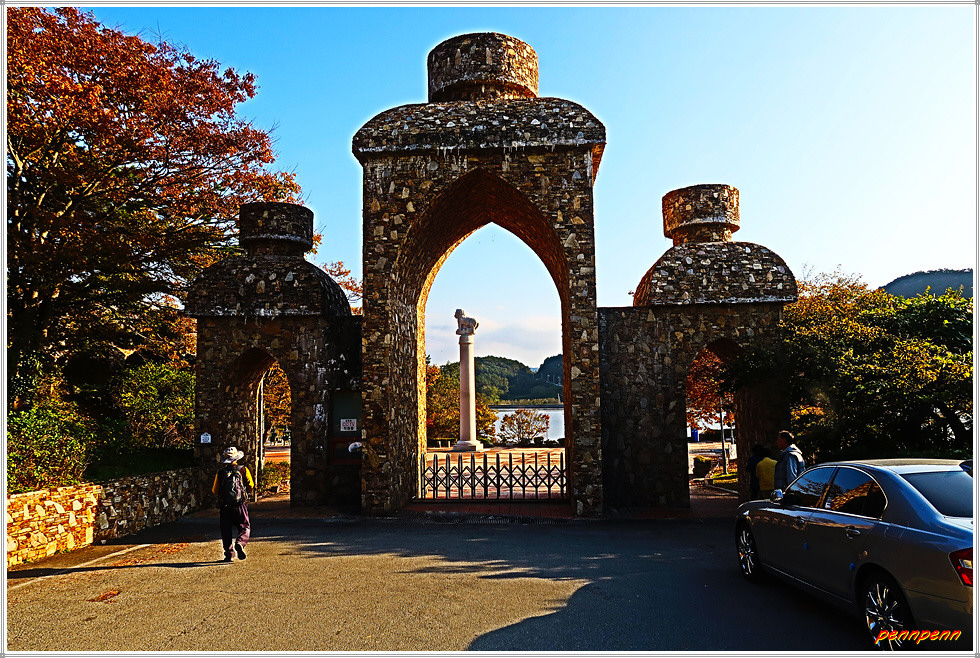 주차장에서 조금 오르면 서쪽으로 영광대교가 보이는데 한 구비를 돌아가면 도래지의 정문인 상징문입니다. 길목에는 붉은 열매가 인상적인 피라칸타(피라칸사스)가 가로수처럼 심어져 있더군요. 상징문은 사찰의 일주문과 같은 것으로 간다라 건축양식으로 지은 것입니다. 광장에는 아소카석주(아쇼카기둥)가 세워져 있는데 이는 기원전 268년부터 232년까지 인도의 마우리아 제국을 다스렸던 아소카의 칙령이 새겨진 기둥으로 인도 대륙 전역에 걸쳐 흩어져 있다고 합니다.