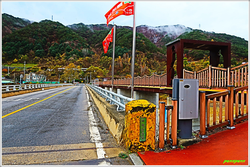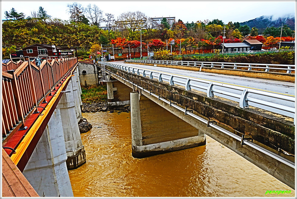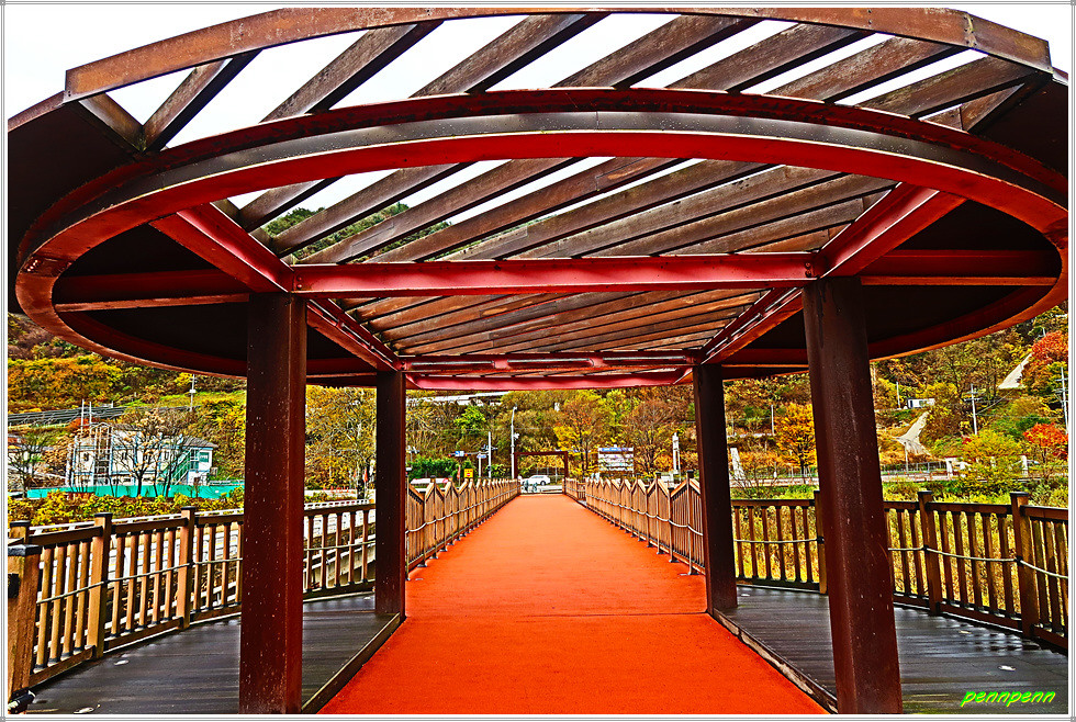 소양강과 인제군청 사이를 달리는 44번국도를 타고 합강정휴게소를 지나 북쪽으로 조금 가면 덕산교차로가 있는데 이곳에서 우측으로 인북천을 가로지르는 붉은 색의 교량이 바로 리빙스턴교입니다.