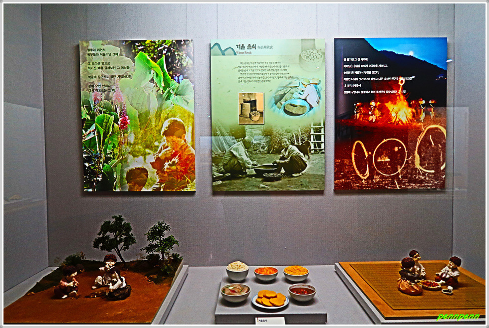2층 건물로 이루어진 박물관은 1,400여 점의 자료를 소장하고 있는데, 2개의 전시실에 200여 점의 민속자료를 모형과 실물, 영상 등을 통하여 재현하고 있습니다. 박물관 내부로 들어서면 로비에 전시작품들이 보이고 안내데스크 옆에는 친근한 민속의 풍경을 조형물로 재현한 전시작품이 있습니다.