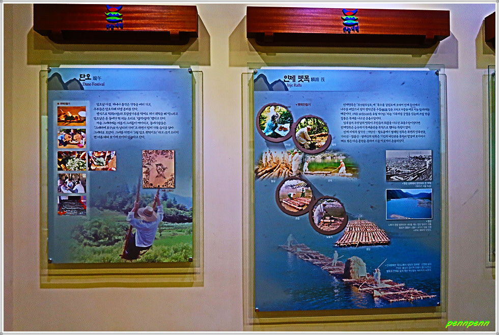 2층으로 올라가면 “하늘내린 인제”라는 대형 서예작품이 걸려 있고, <산촌사람들의 삶과 믿음의 세계>라는 주제의 전시실은 계절의 변화에 따른 산촌의 세시풍속과 생업관행, 마을신앙 등을 전시하고 있습니다. <산촌사람들의 애환과 여유>라는 주제의 전시실은 올챙이국수, 옹심이 등의 산촌음식과 천렵, 부럼깨기, 단오취떡 등의 민속놀이를 전시하고 있어 이를 통해 1940∼70년대 인제지역에 살았던 사람들의 삶의 모습을 전체적으로 살펴 볼 수 있습니다.