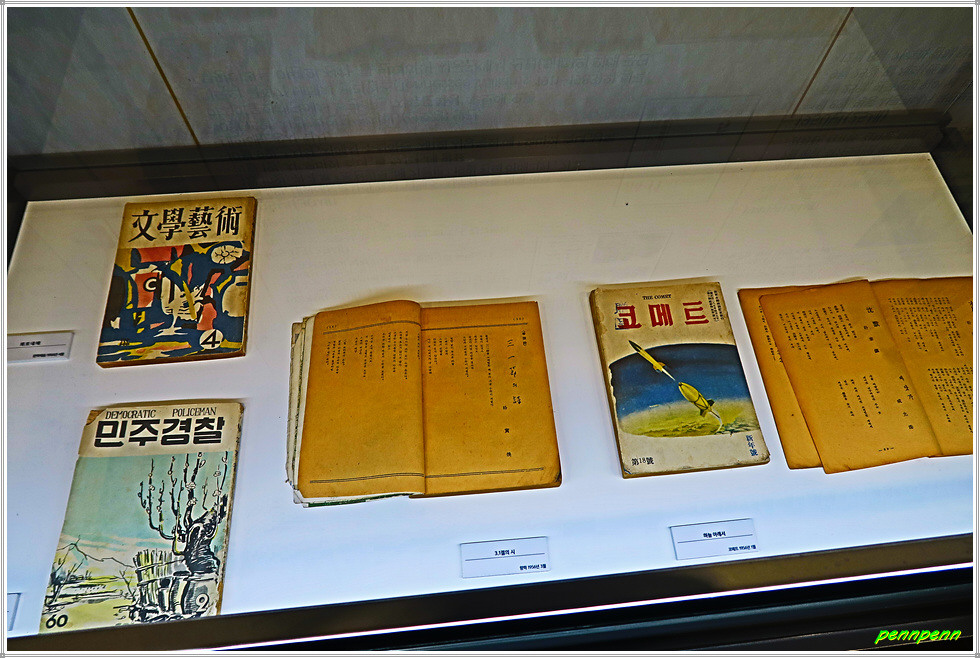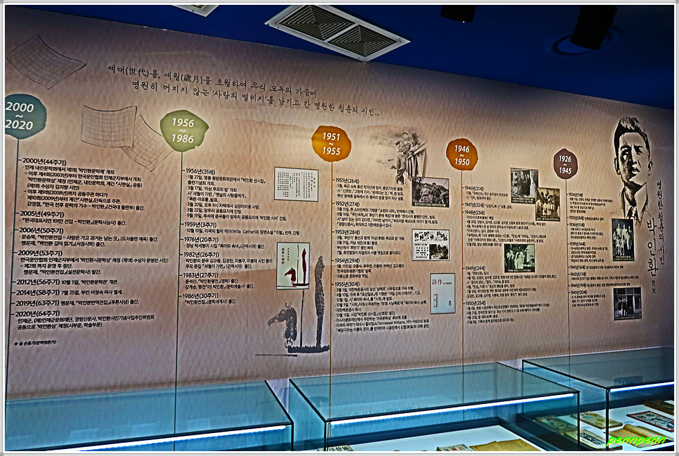 계단을 이용해 2층으로 오르면 박인환 시인의 연보가 자세하게 소개되어 있으며 시인과 관련된 도서 및 언론보도 관련내용이 일목요연하게 정리되어 있습니다.