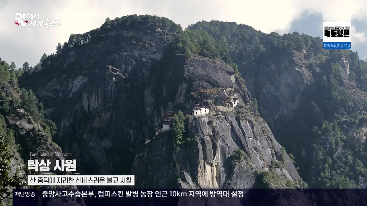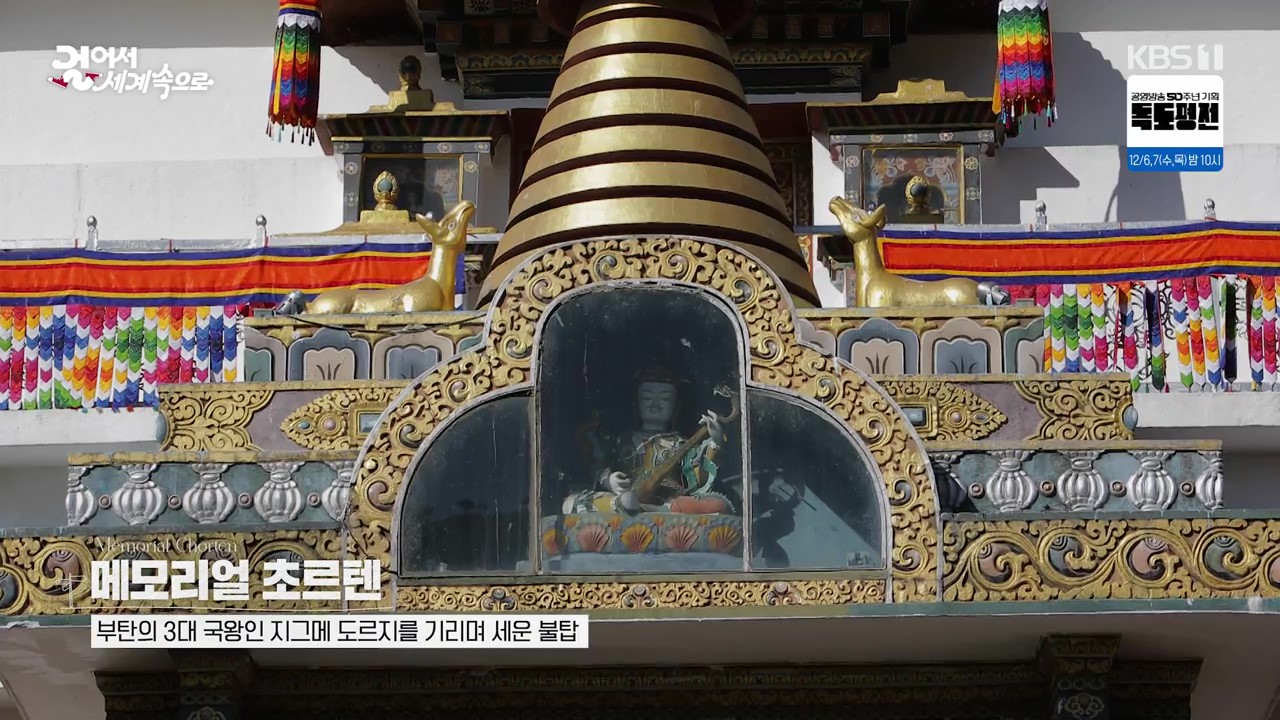 KBS 1TV에서 방영중인 “걸어서 세계 속으로”는 세계의 다양한 도시들을 여행자의 시각으로 바라보고 그들의 역사와 문화, 삶의 모습을 담은 프로그램입니다. 지난 2023. 11. 25 방영된 제819회의 주제는 “행복의 왕국 부탄”이였습니다.