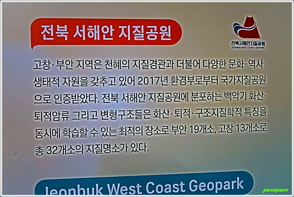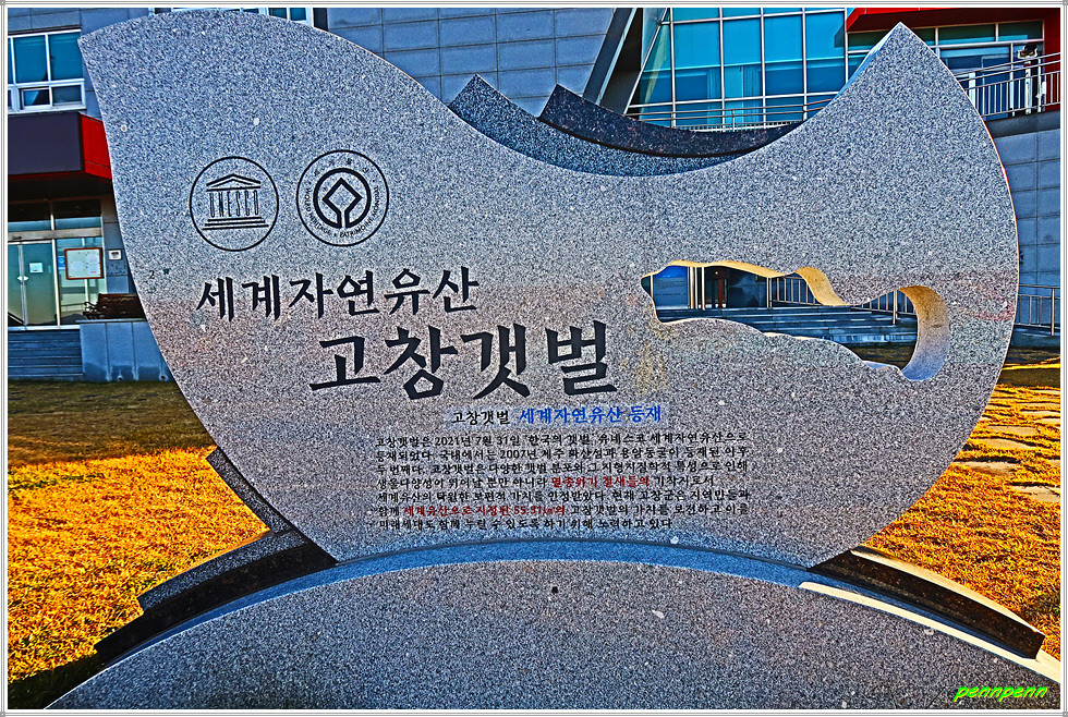 고창의 갯벌은 고창-부안 지역 지질 명소인 (고창)선운산, 운곡람사르습지, 고인돌, 명사십리 해안, 부안 변산반도 등과 함께 다양한 지질·문화·역사·생태적 자원으로 인정받아 2017년 “전북서해안권 국가지질공원”으로 지정되었으며, 2023년 유네스코 세계지질공원으로 지정되었습니다. 고창갯벌은 다양한 퇴적 스펙트럼, 계절 변화 양상 등의 지질학적 학술가치는 물론 1,800년 전부터 형성되었던 특이 모래 퇴적체인 쉐니어가 발달해 있습니다.