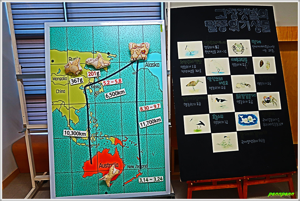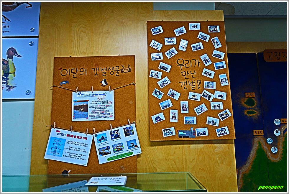 전시관 안으로 들어서니 고창갯벌의 중요성에 관한 각종 자료들이 패널, 사진, 인형, 서적 등의 형태로 잘 전시되어 있더군요. 필자가 방문한 때 어린이를 데리고 온 관람객이 있었는데 아이들이 많은 관심을 가지는 것을 보면서 전시관을 참 잘 꾸몄음을 느꼈습니다.