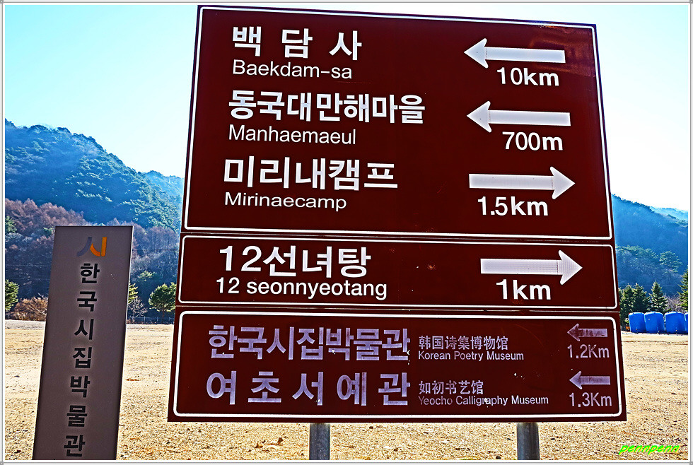 만해마을을 지나면 우측에 한국시집박물관이 있는데요. 인제군 북면 용대리 소재 한국시집박물관은 우리나라 근·현대기의 시집을 체계적으로 전시하는 박물관입니다. 이곳에는 근현대 시인의 시집과 자료를 등 1970년대 이전 한국시의 역사를 전시·교육장으로 꾸며놓고 있습니다. 박물관은 국내외 300여명의 시인들과 소장가들이 기증한 1950년대 이전에 간행된 희귀시집 100여권을 포함해 시집 1만여 권을 소장하고 있습니다.