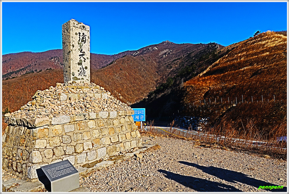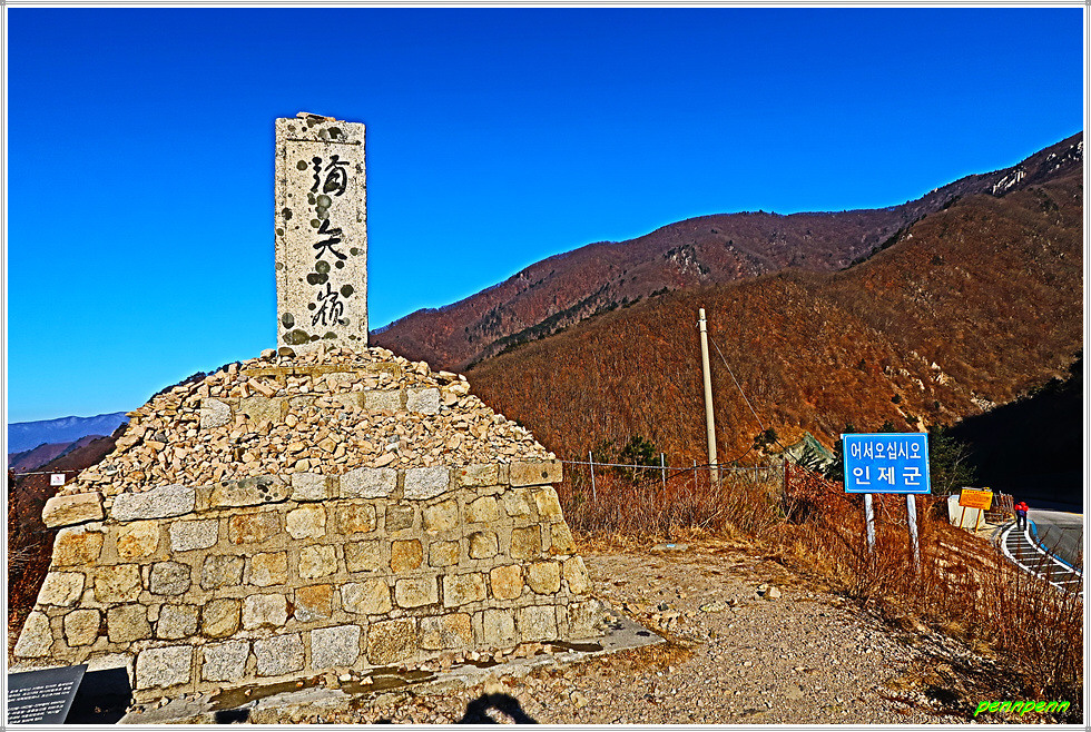 인제군 북면과 고성군 토성면을 잇는 해발 826미터의 고개인 미시령은 북으로는 진부령, 남으로는 한계령과 함께 영동(속초시, 고성군)과 영서(인제군)를 넘는 주요한 고갯마루였으나 2006년 민자사업으로 건설된 미시령터널의 개통 이후 미시령 옛길을 찾는 차량의 수가 급감하였습니다. 미시령 표석의 글씨는 이승만 대통령의 휘호라고 하는군요.