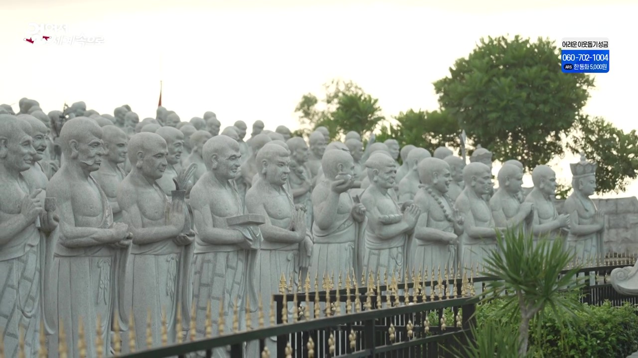 500 로한사원은 중국계 이민자들이 만든 사원으로 그 규모가 매우 큽니다. 안으로 들어서면 500 아라한상(석거모니의 제자들)이 있는데 중국예술가들이 조각해 보내온 조각상입니다. 모든 아라한의 표정이 달라 보는 재미가 있군요.