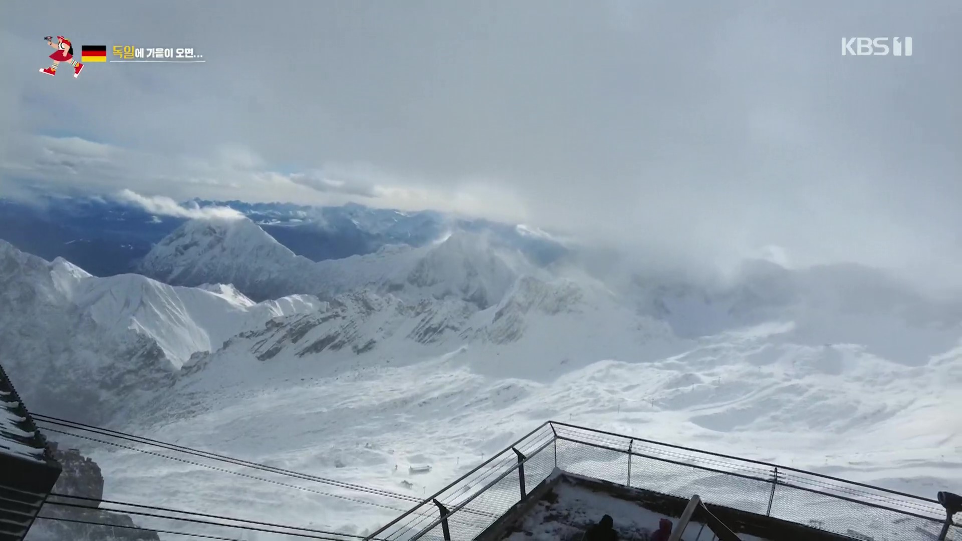 추크슈피체산은 독일남부에 위치한 독일의 최고봉(2,962m)입니다. 케이블카를 타고 오른 전망대에서 바라보는 풍경은 비현실적입니다. 그런데 갑자기 강풍이 휘몰아쳐 시계가 전혀 보이지 않아 케이블카를 타고 300m를 내려오니 날씨가 매우 청명해 아름다운 설경을 감상할 수 있었습니다.
